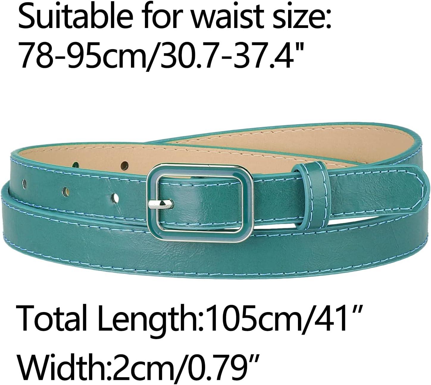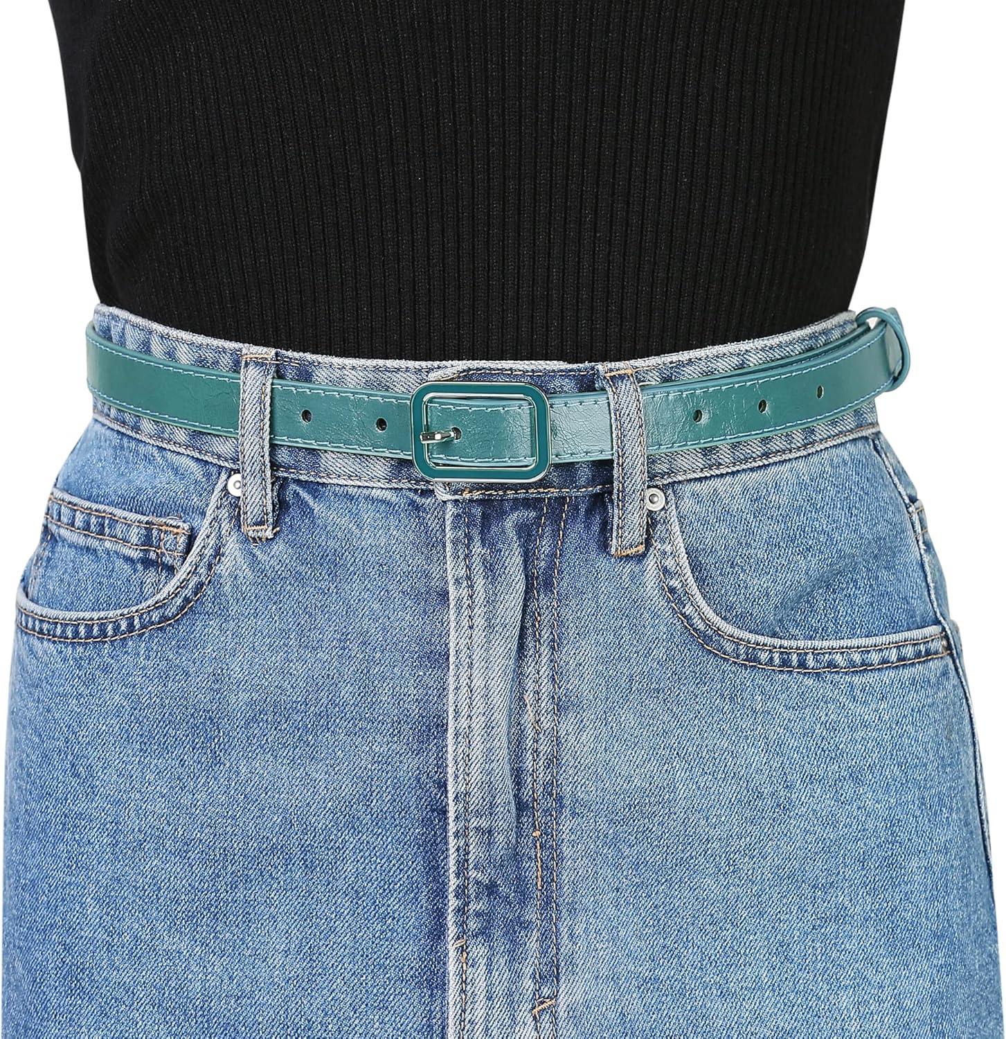 Allegra K Thin Waist Belts for Women Rectangle Pin Buckle Skinny Leather Belt for Pants Dress(Green)