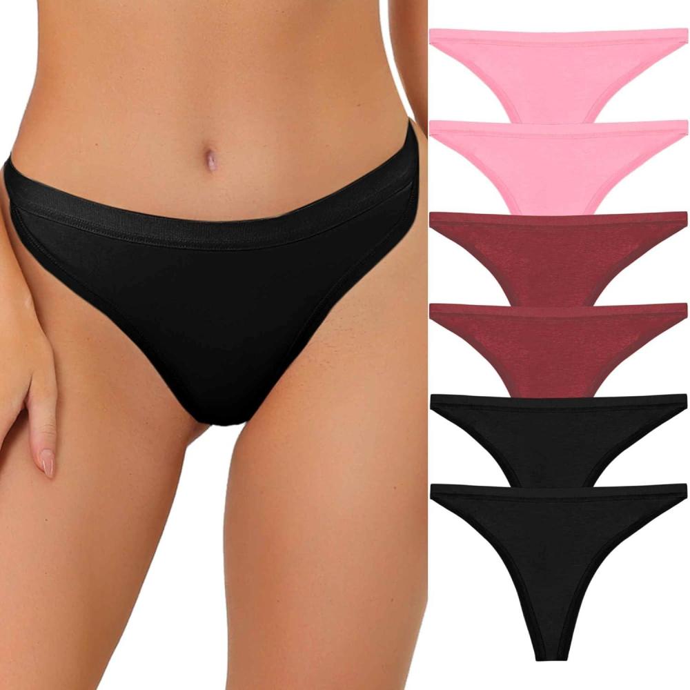 Allegra K Thongs for Women Packs G-String Panties Breathable Hi-Cut Tangas Underwear(2 Rose Red/2 Burgundy/2 Black)