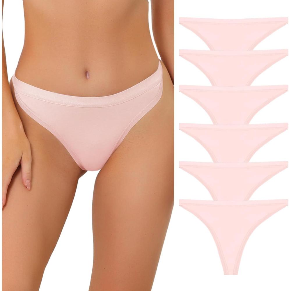 Allegra K Thongs for Women Packs G-String Panties Breathable Hi-Cut Tangas Underwear(6 Pink)