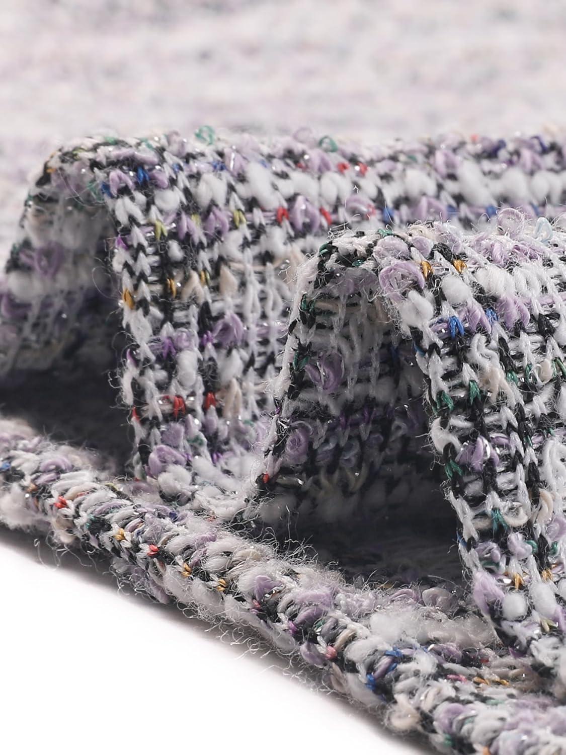 Allegra K Tweed Dress for Women’s Fall Elegant Boat Neck 3/4 Sleeve 2025 Work Dress(White Purple)