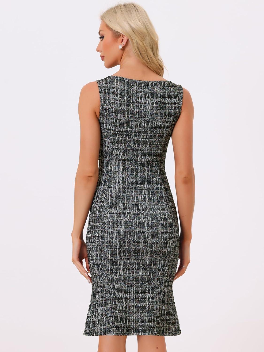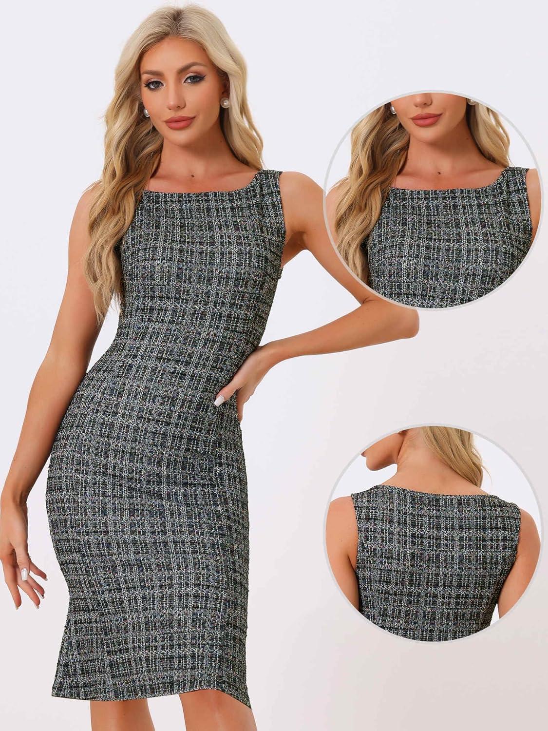 imageAllegra K Tweed Dress for Womens Summer Sleeveless Elegant Plaid Bodycon DressesBlack