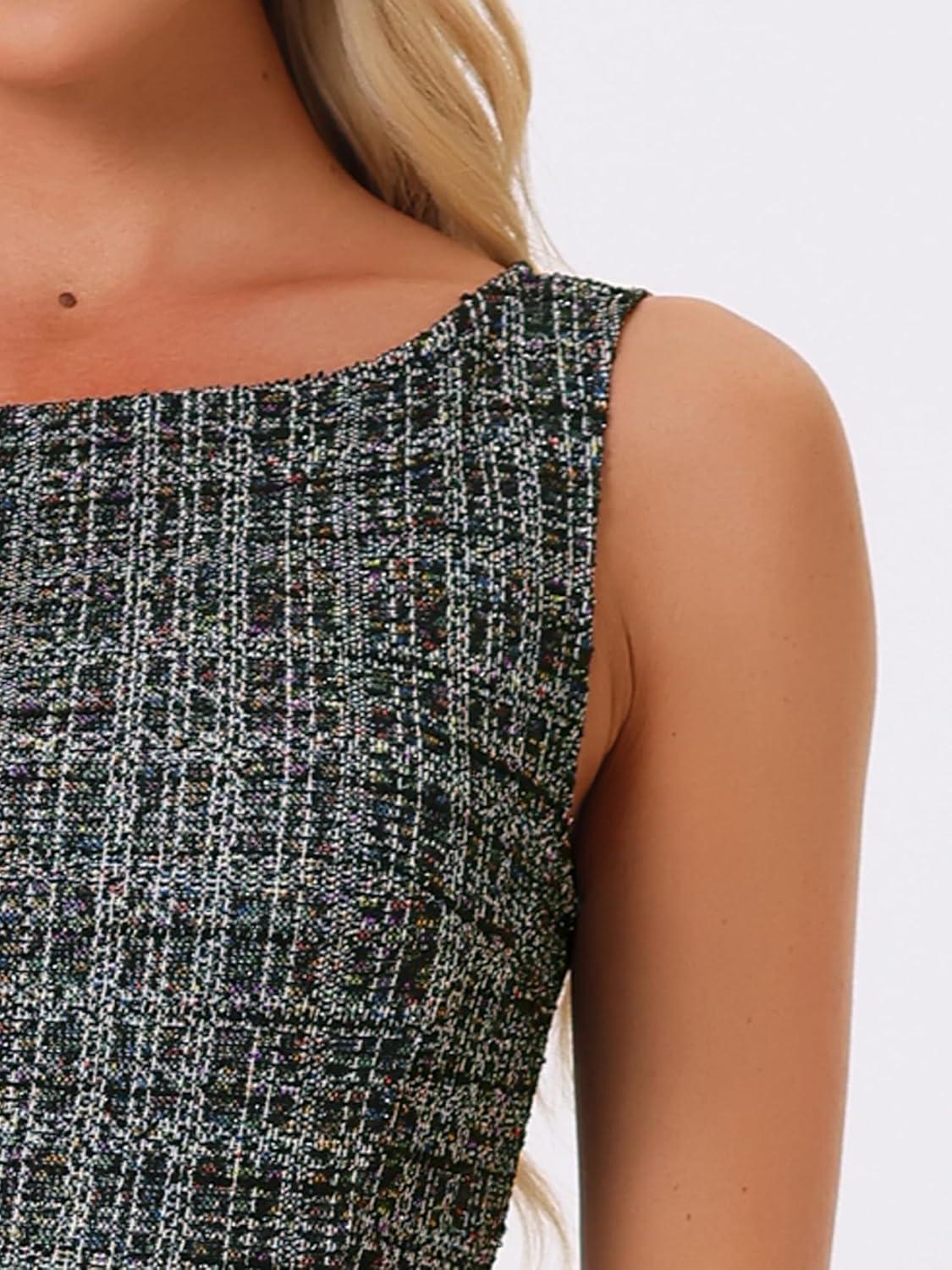 imageAllegra K Tweed Dress for Womens Summer Sleeveless Elegant Plaid Bodycon DressesGreen