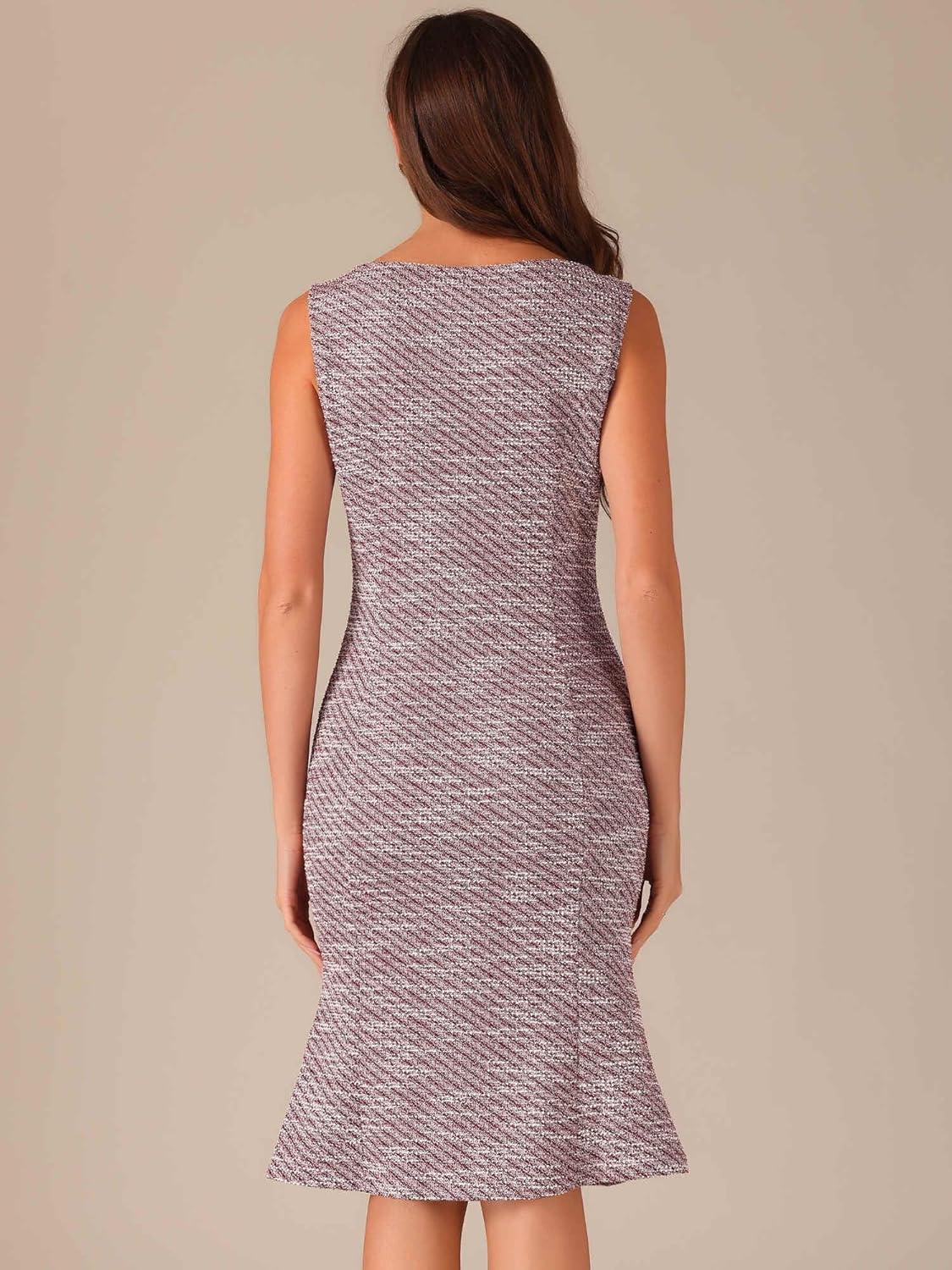 Allegra K Tweed Dress for Women's Summer Sleeveless Elegant Plaid Bodycon Dresses(Wine Red)