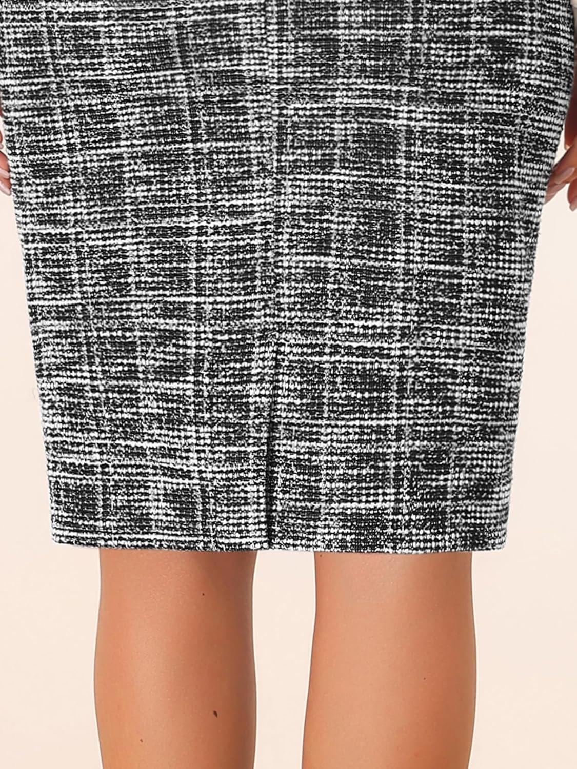 Allegra K Tweed Skirt for Women's Office Work High Waist Split Bodycon Plaid Pencil Skirts(Black)