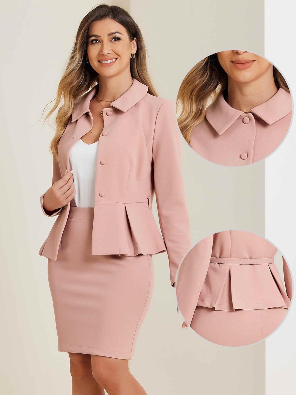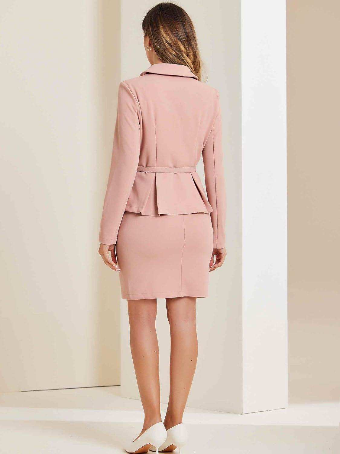 Allegra K Two Pieces Suits for Women’s Business Peplum Blazer Jacket Mini Pencil Skirt Sets(Pink)