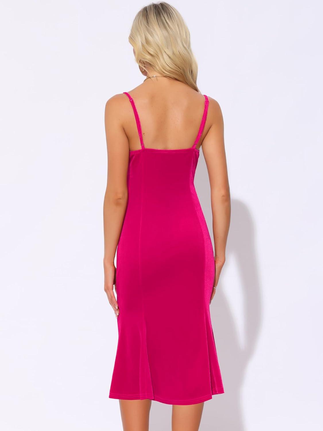 Allegra K Velvet Dress for Women's Christmas Spaghetti Straps V Neck Fishtail Evening Cocktail Dress(Hot Pink)