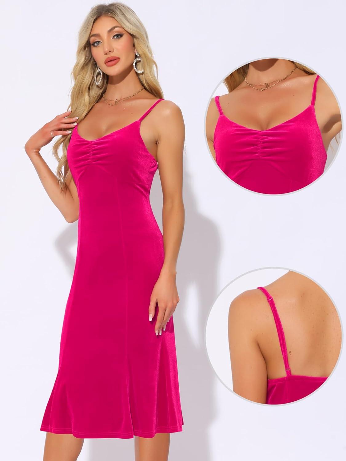 imageAllegra K Velvet Dress for Womens Christmas Spaghetti Straps V Neck Fishtail Evening Cocktail DressHot Pink