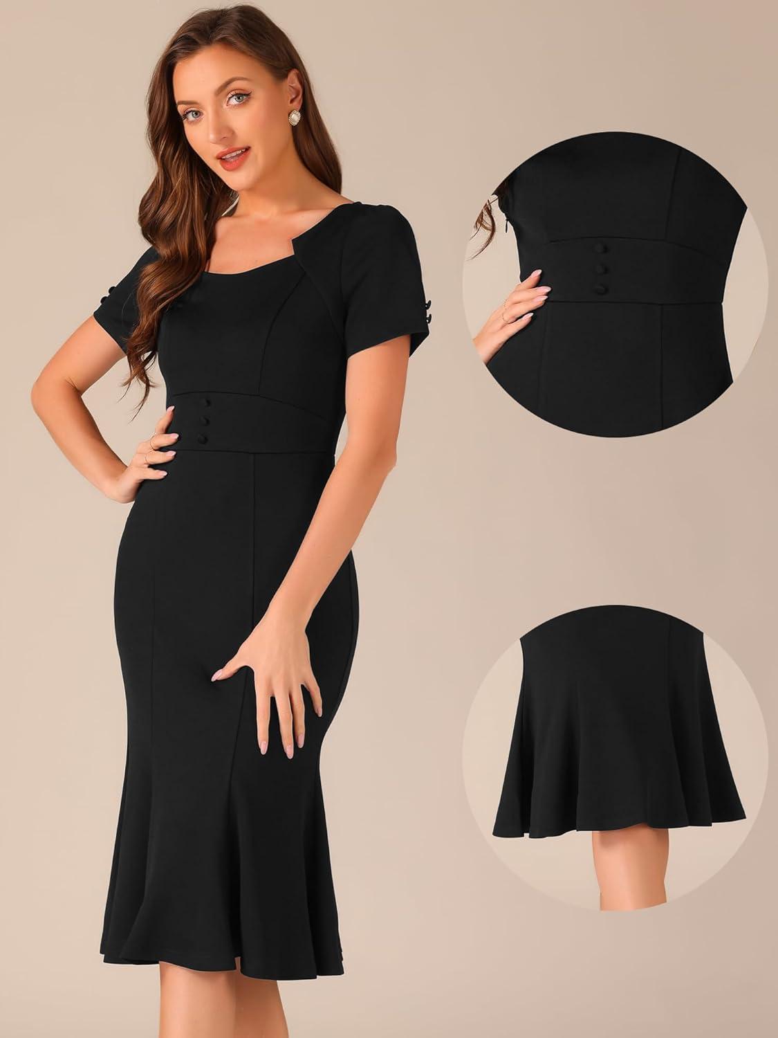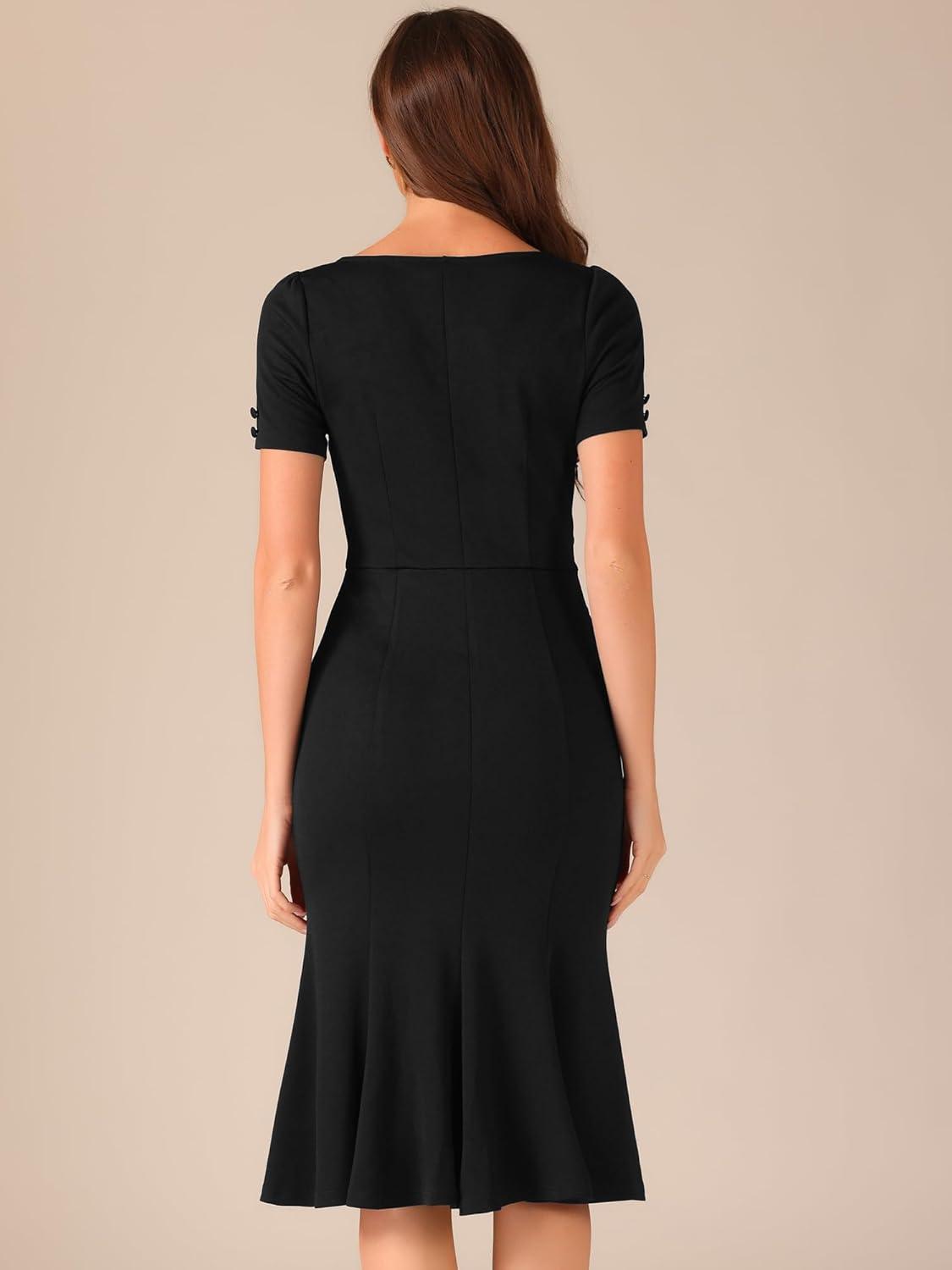 Allegra K Vintage 50s Dress for Women’s Retro Cocktail Work Mermaid Midi Dress(Black)