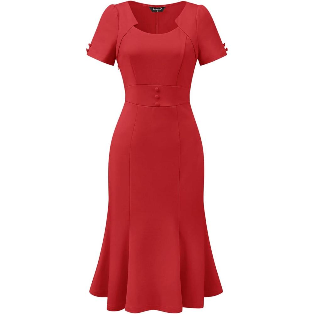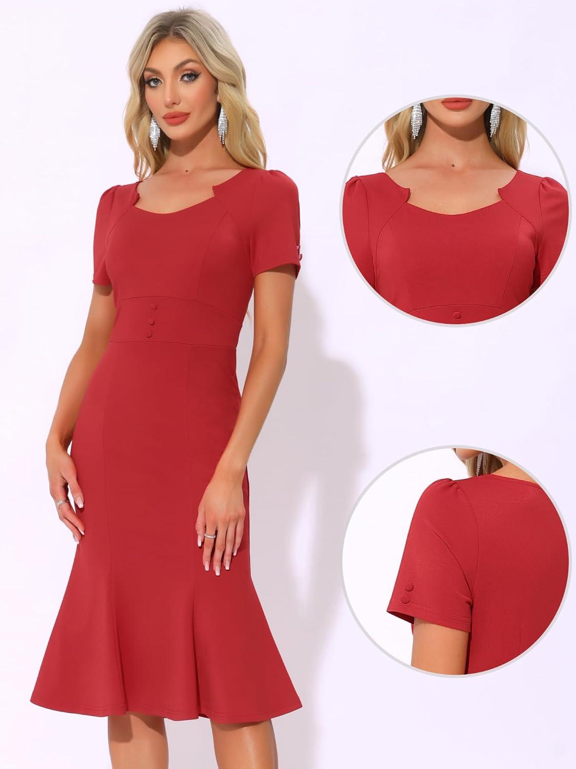 Allegra K Vintage 50s Dress for Women’s Retro Cocktail Work Mermaid Midi Dress(Red)