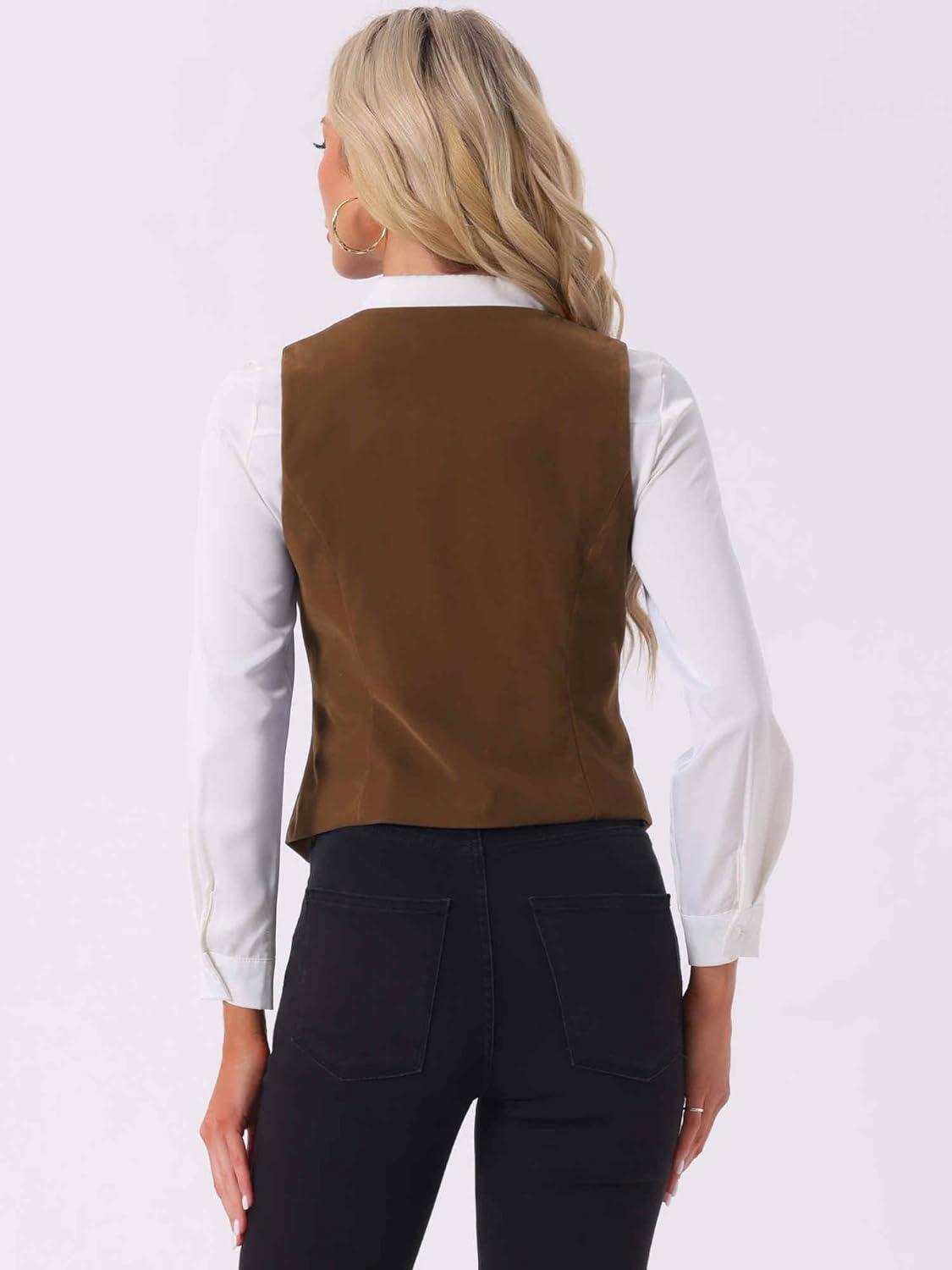 imageAllegra K Waistcoat for Womens Steampunk Velvet Vintage 2025 Sleeveless Blazer Dressy Suit VestsDark Brown