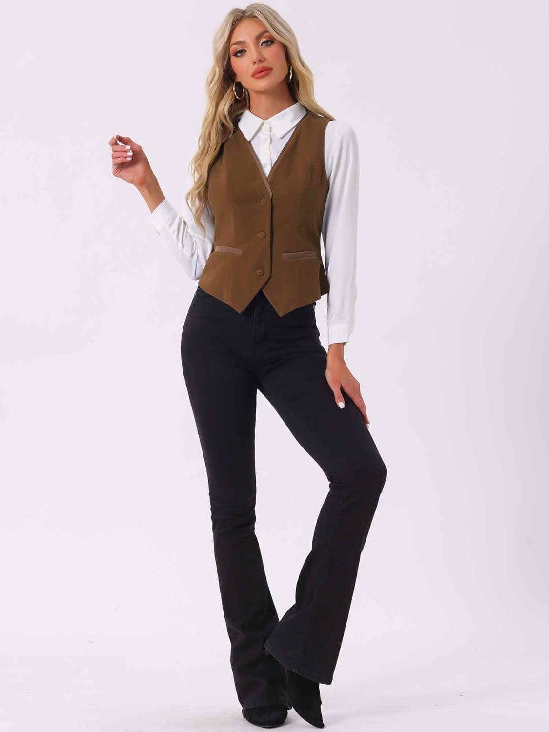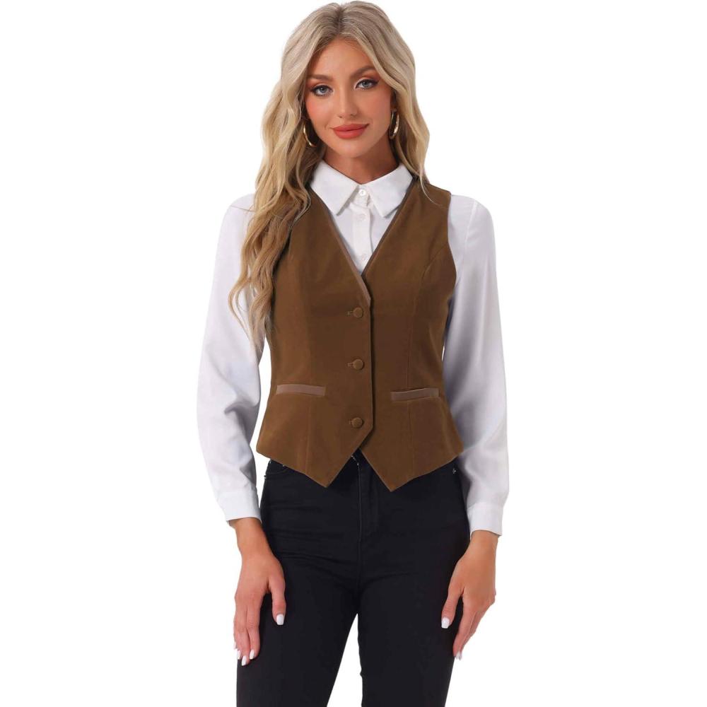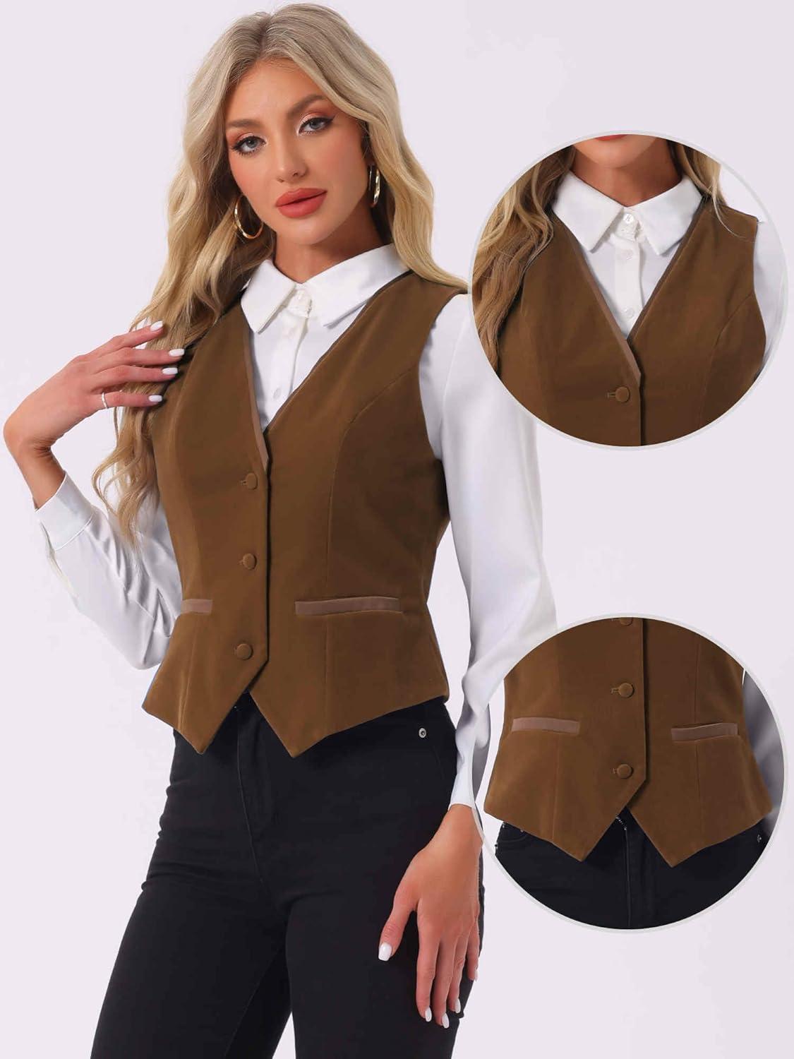 Allegra K Waistcoat for Women’s Steampunk Velvet Vintage 2025 Sleeveless Blazer Dressy Suit Vests(Dark Brown)