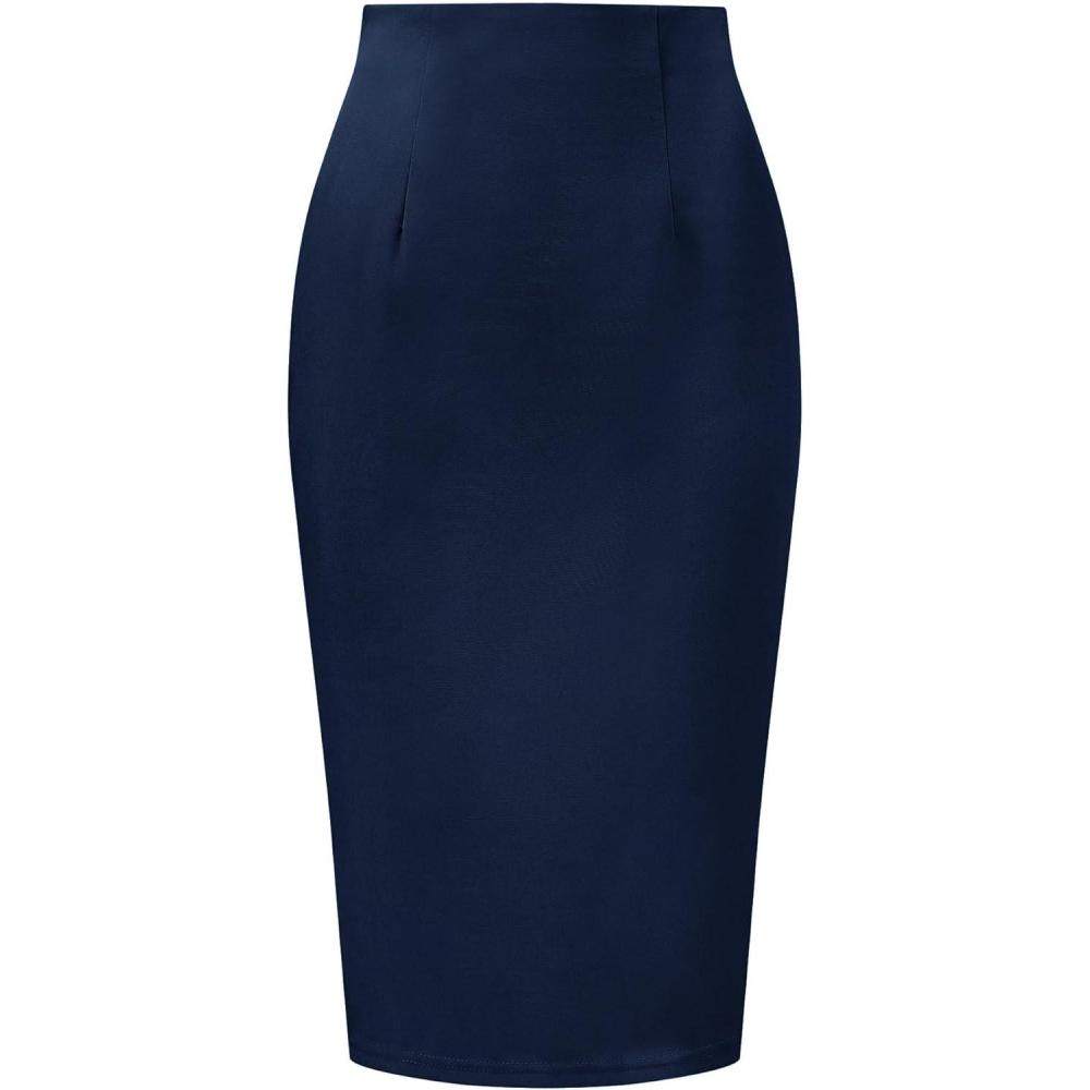 Allegra K Wear to Work Pencil Skirts for Women’s Business Knee Length High Waist Bodycon Suit Skirt(Dark Blue)