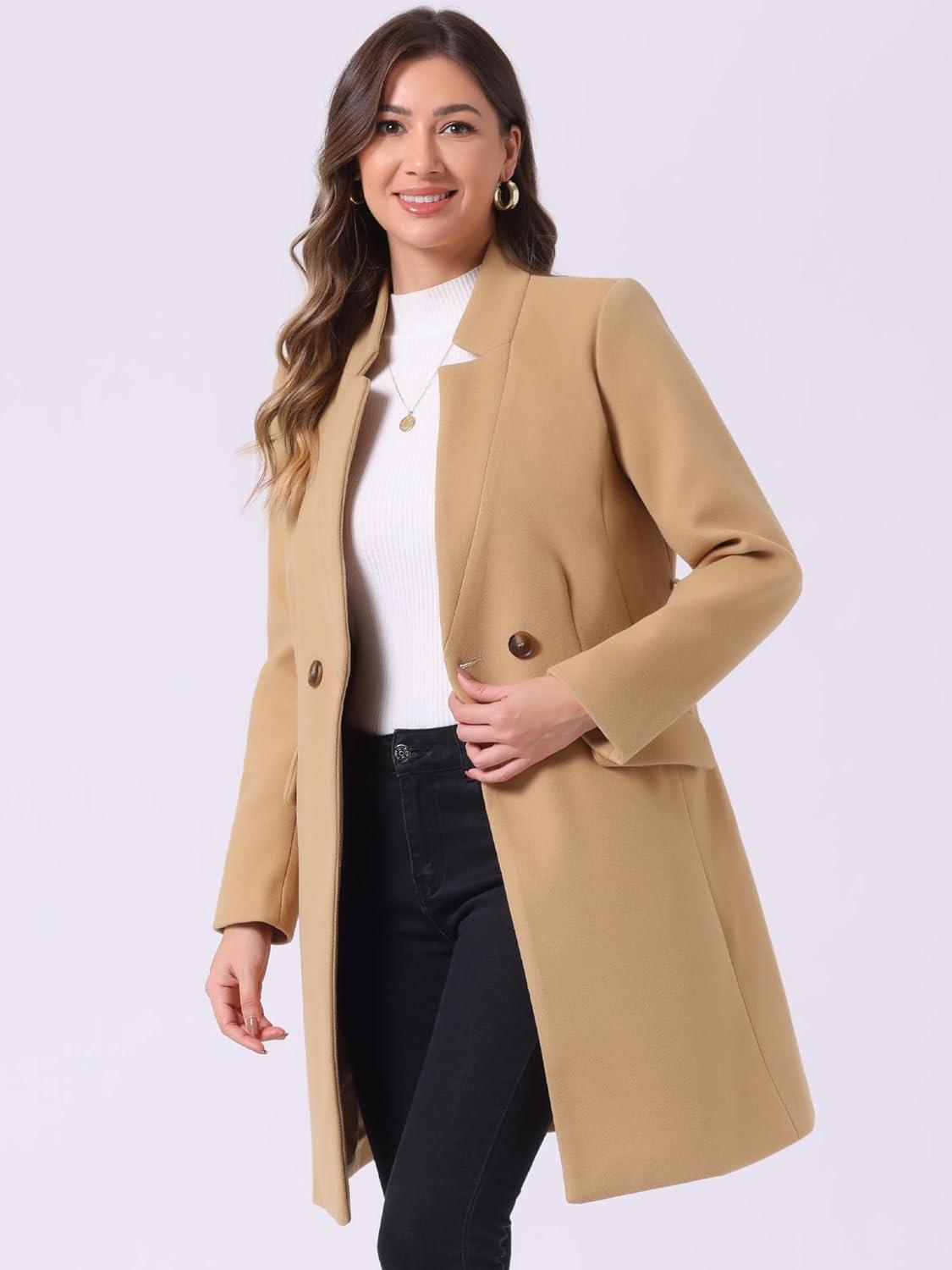 Allegra K Winter Pea Coat for Women's Classic Outwear Stand Collar Wrap Belted Trench Coats(Khaki)