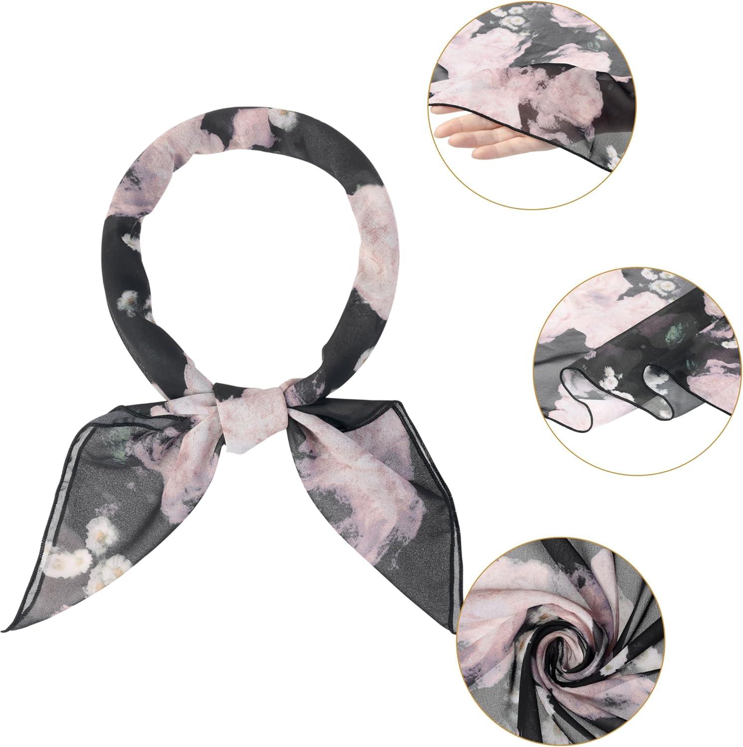 Allegra K Women Chiffon Scarves – 27.6″ X27.6″ – Floral Print Square Kerchief Neck Scarf Neckerchief(Black)
