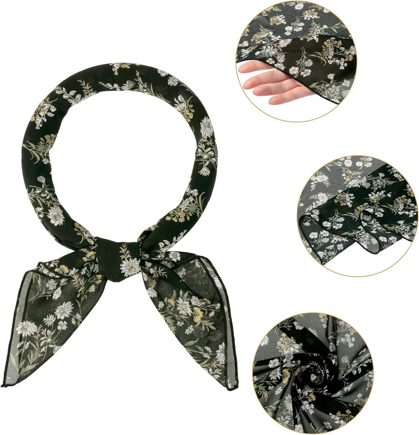 Allegra K Women Chiffon Scarves – 27.6″ X27.6″ – Floral Print Square Kerchief Neck Scarf Neckerchief(Black)