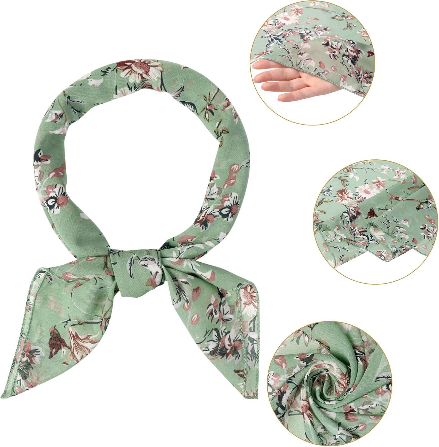 Allegra K Women Chiffon Scarves – 27.6″ X27.6″ – Floral Print Square Kerchief Neck Scarf Neckerchief(Green)