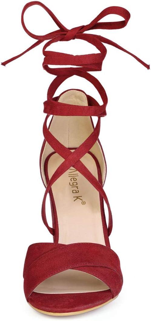 Allegra K Women Crisscross Front Block Heeled Lace Up Red Sandals – 9 M US