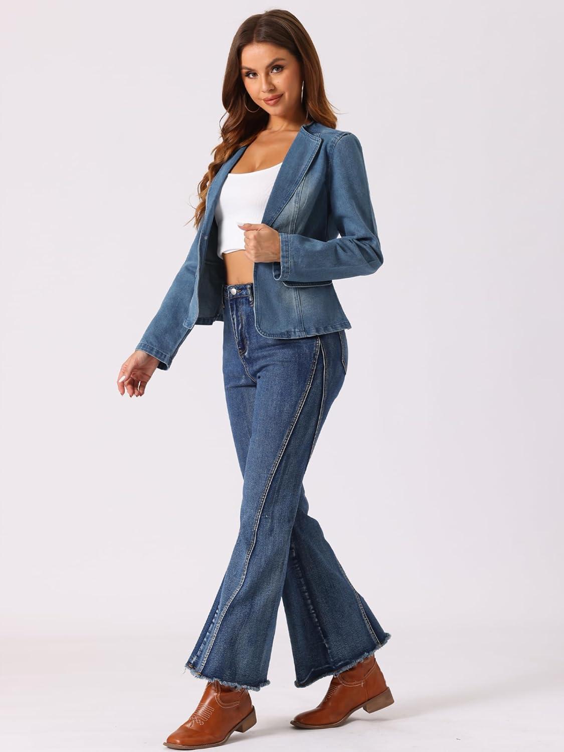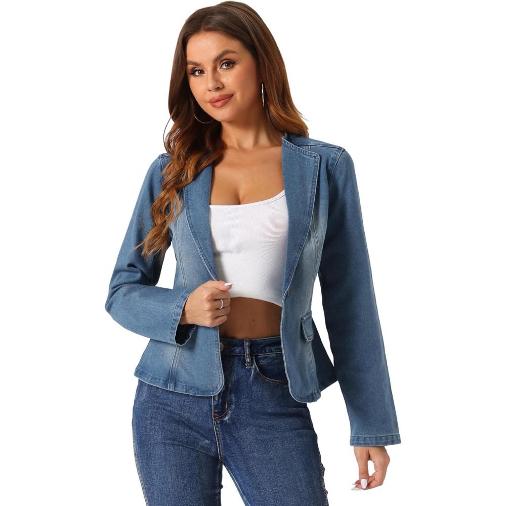 Be the first to review “Allegra K Women Cropped Jean Jacket Long Sleeve Collarless One Button Lightweight Stretchy Fitted Denim Shacket Jackets(Ice Blue)”