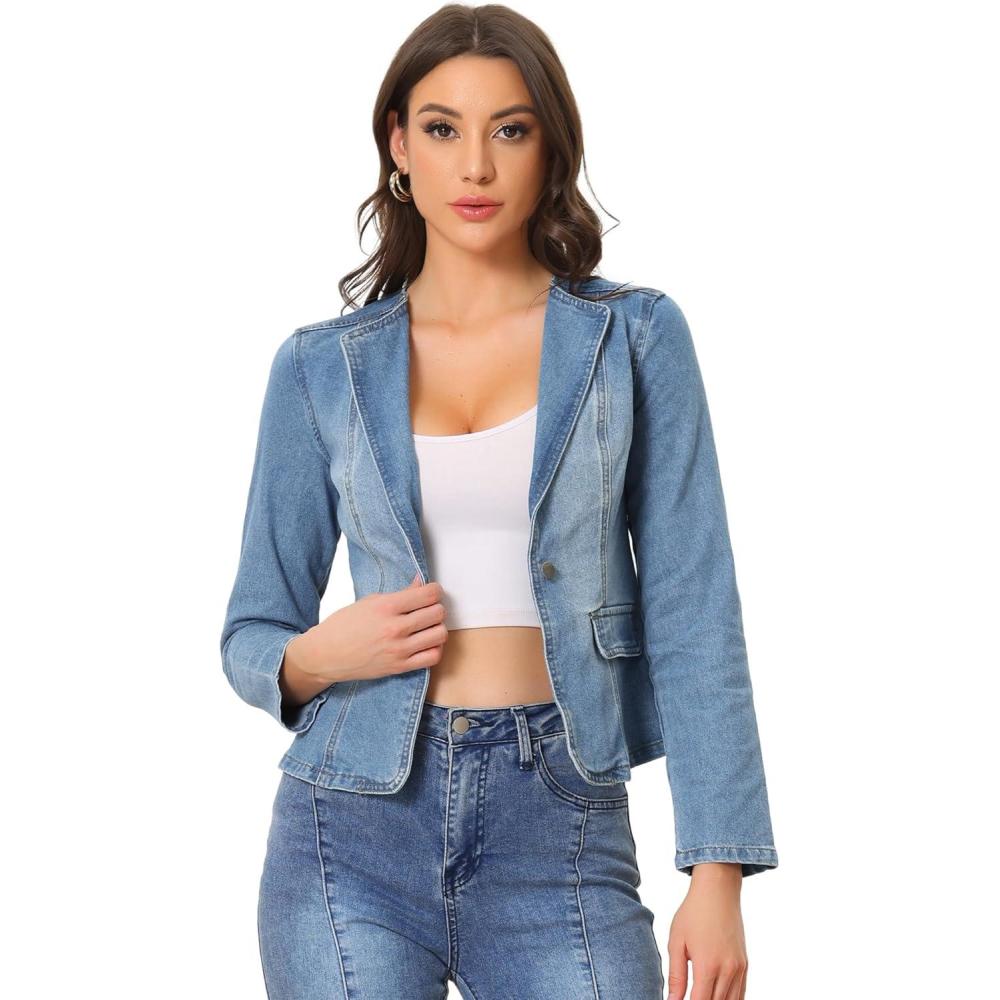 Be the first to review “Allegra K Women Cropped Jean Jacket Long Sleeve Collarless One Button Lightweight Stretchy Fitted Denim Shacket Jackets(Light Blue)”