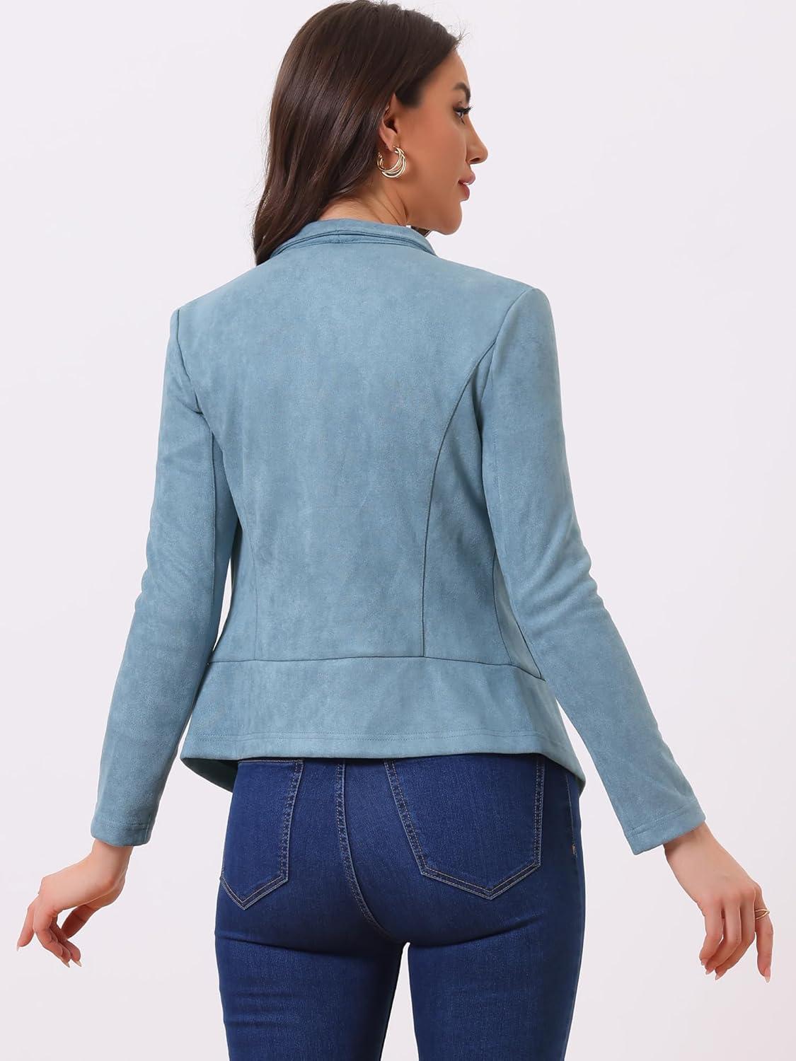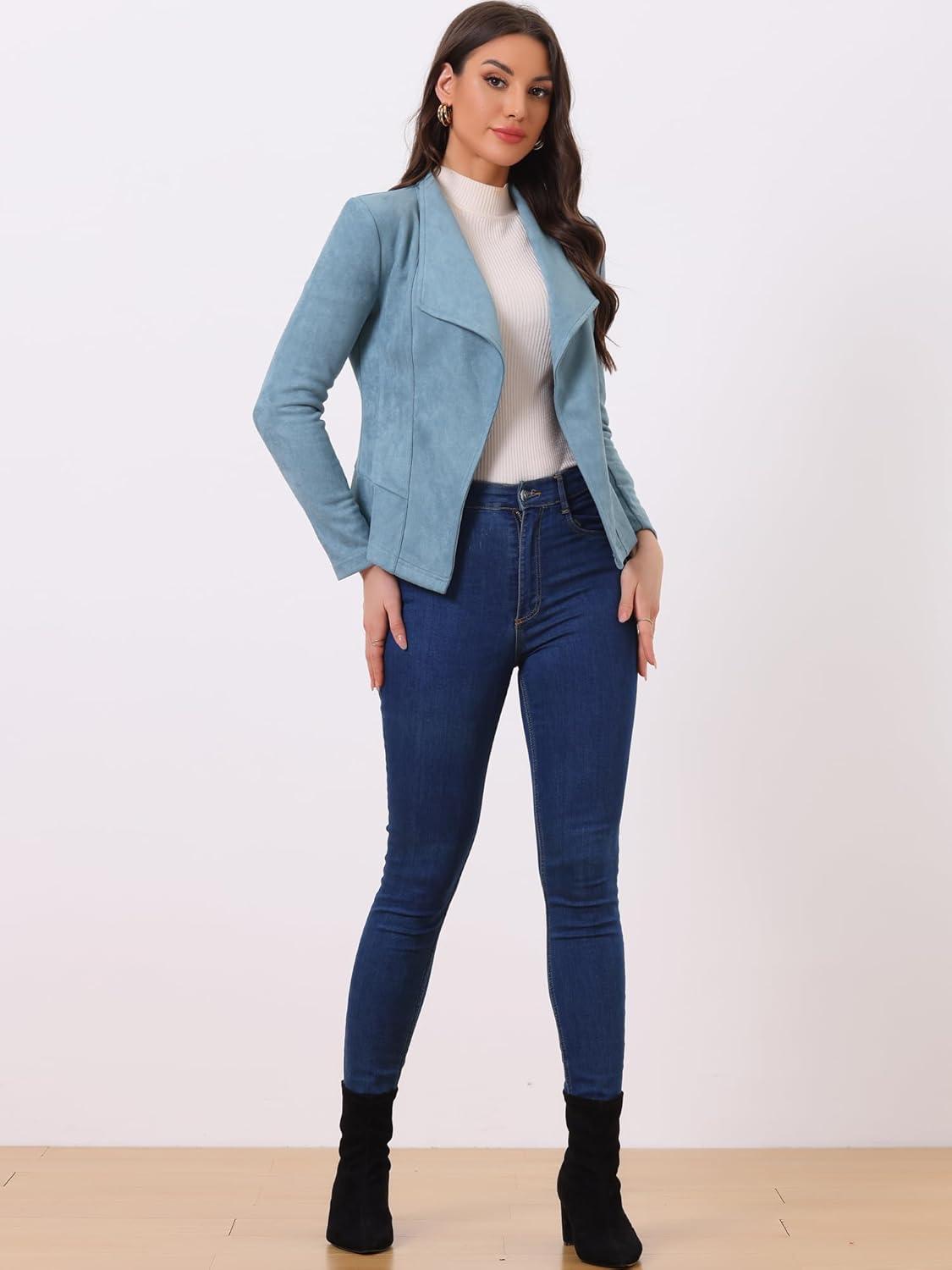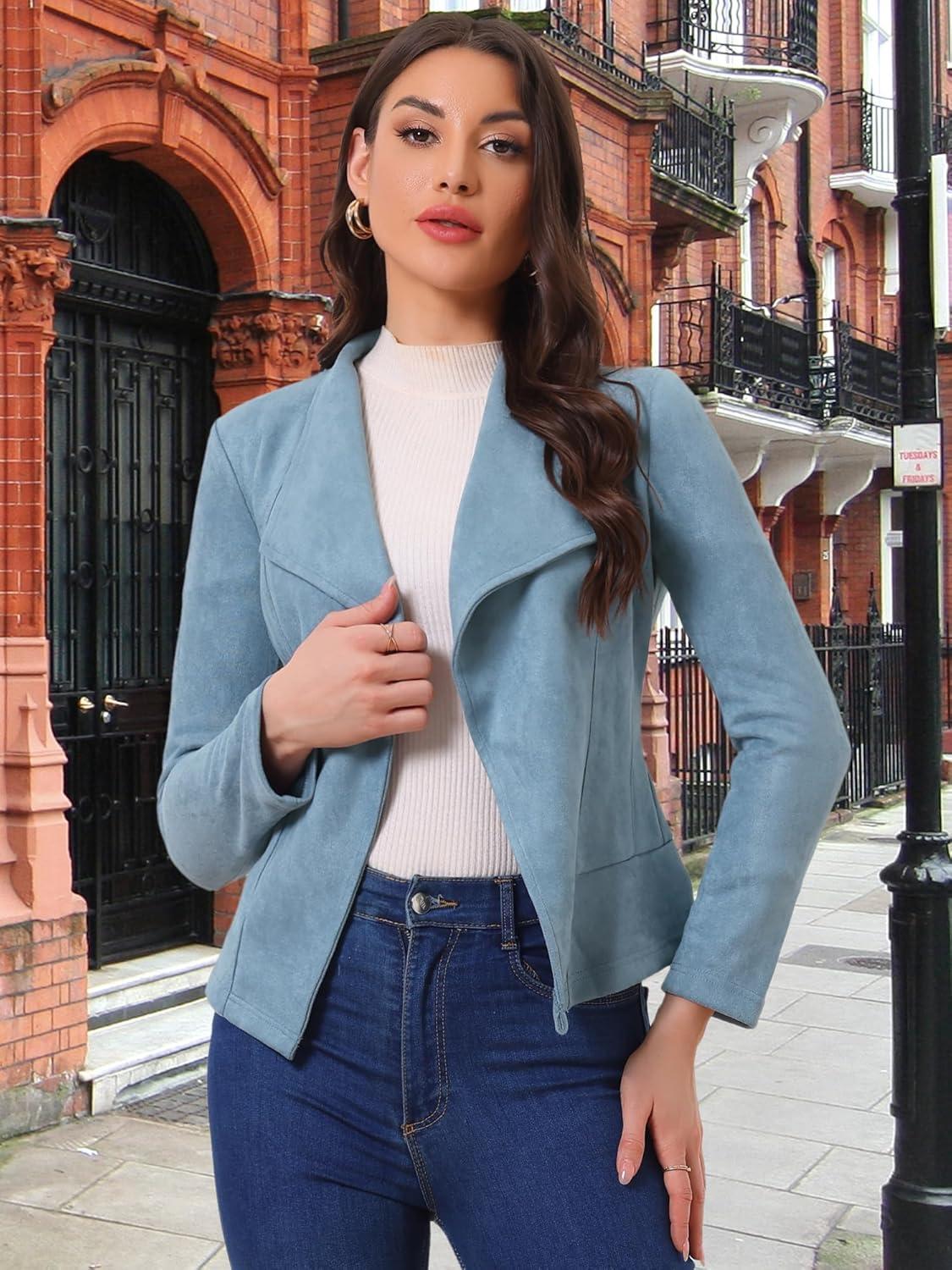Allegra K Women Faux Suede Jacket Lapel Draped Open Front Cardigan Casual Trendy Suede Blazer(Gray Blue)