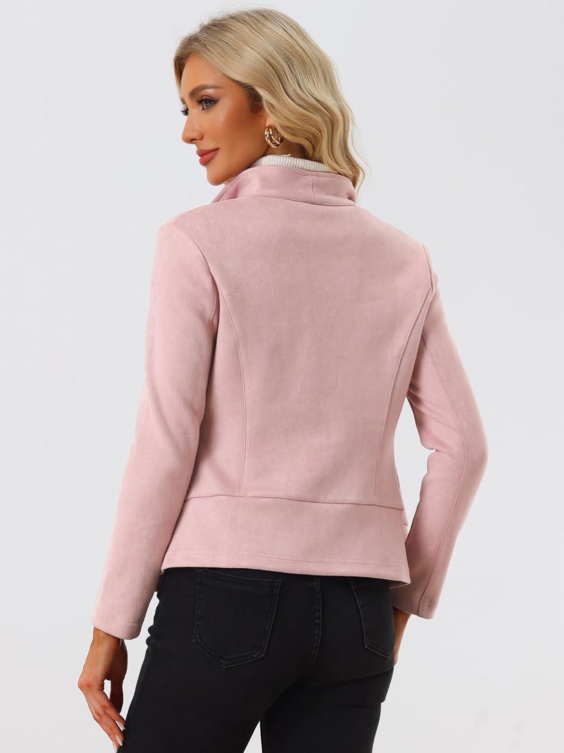Allegra K Women Faux Suede Jacket Lapel Draped Open Front Cardigan Casual Trendy Suede Blazer(Pink)