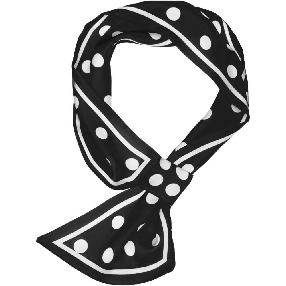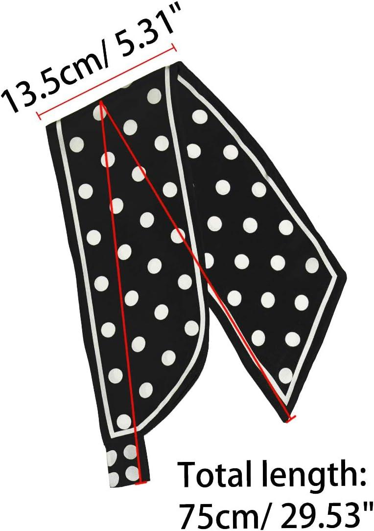 Allegra K Women Polka Dots Bevel Small Skinny Scarf Oblique Neck Scarves Double-Sided Neckerchief(Black)
