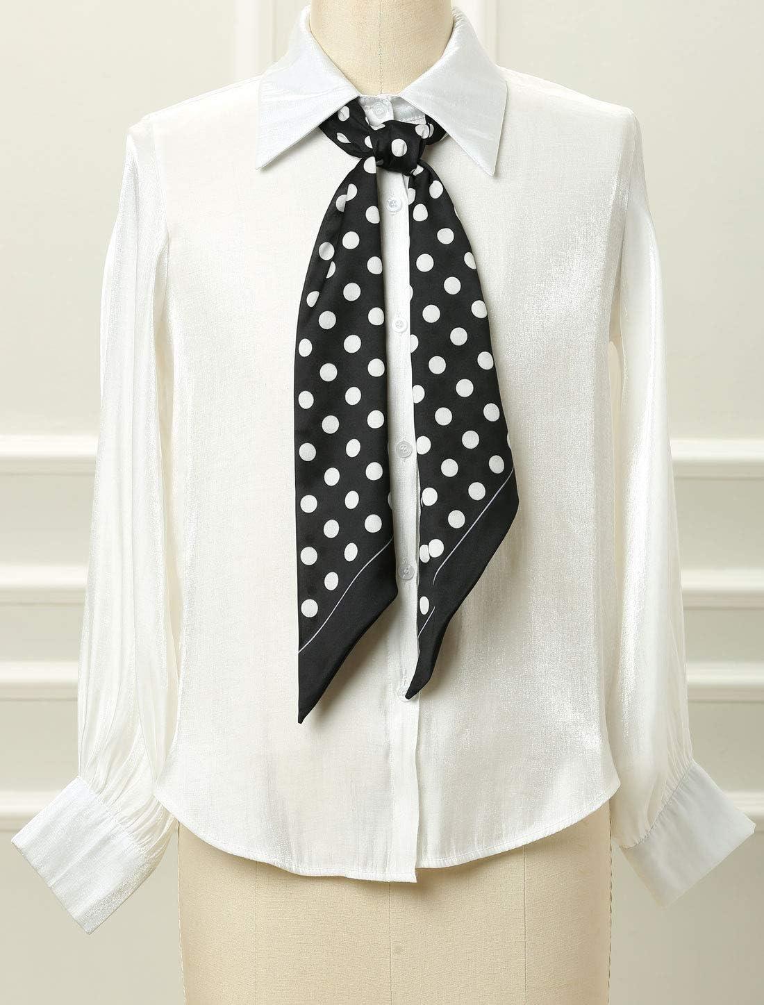 Allegra K Women Polka Dots Skinny Scarf Neck Scarves Double Sided Print Neckerchief Hairband(Black)