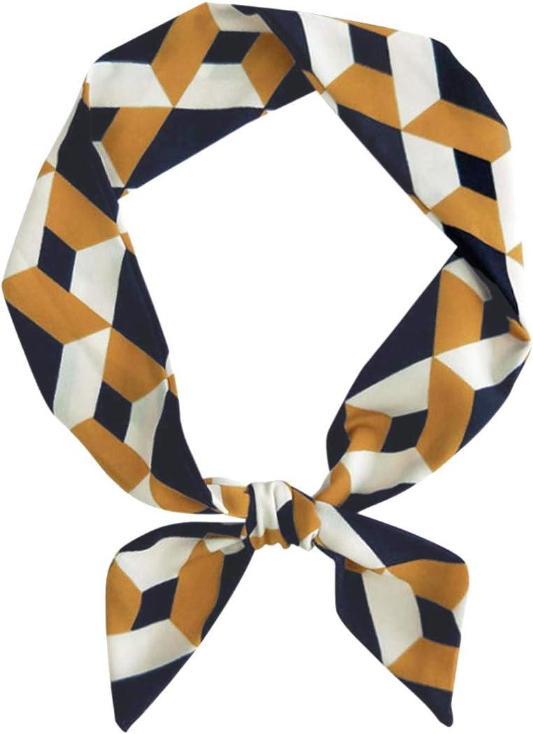 Allegra K Women Polka Dots Stripe Heart Print Skinny Scarf Sharp Neck Scarves Double-Sided Neckerchief(Yellow)