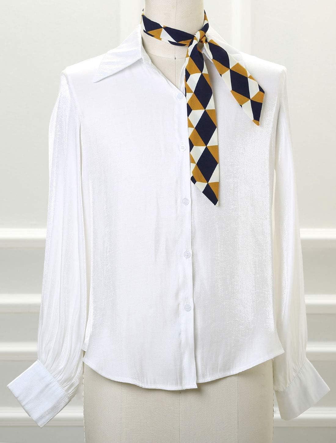 Allegra K Women Polka Dots Stripe Heart Print Skinny Scarf Sharp Neck Scarves Double-Sided Neckerchief(White)