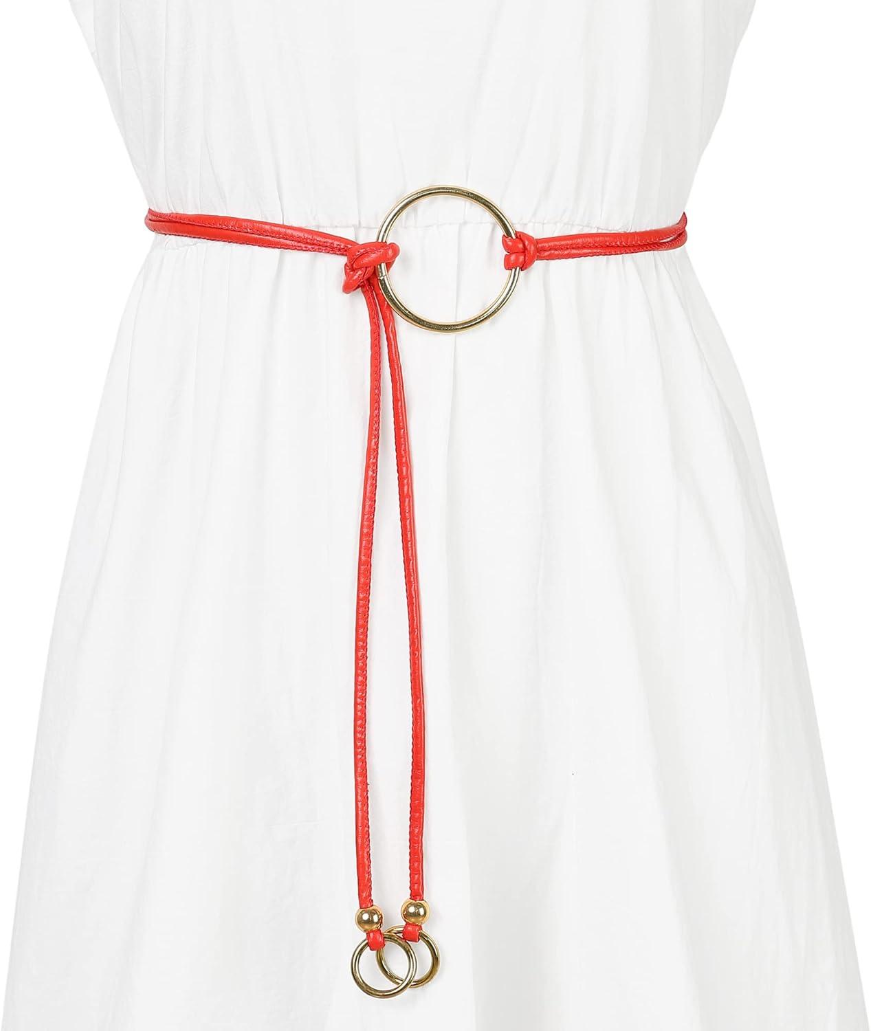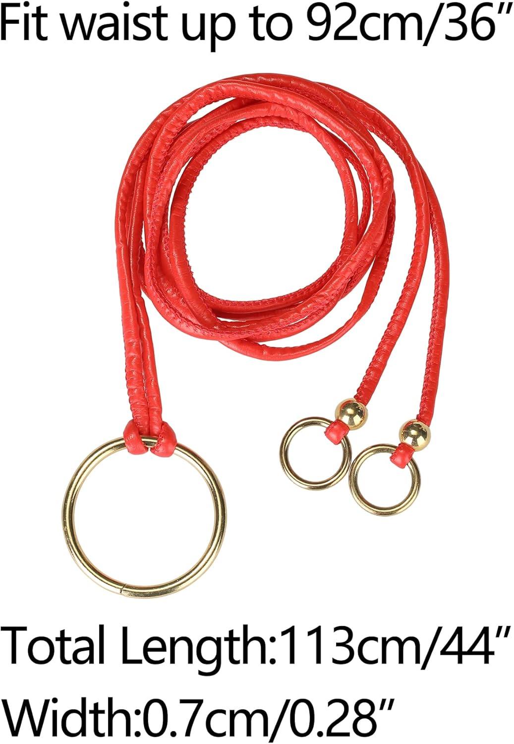 Allegra K Women PU Leather Skinny Rope Belt Round Ring Endings Self Tie Waistband Thin Waist Strap(Red)
