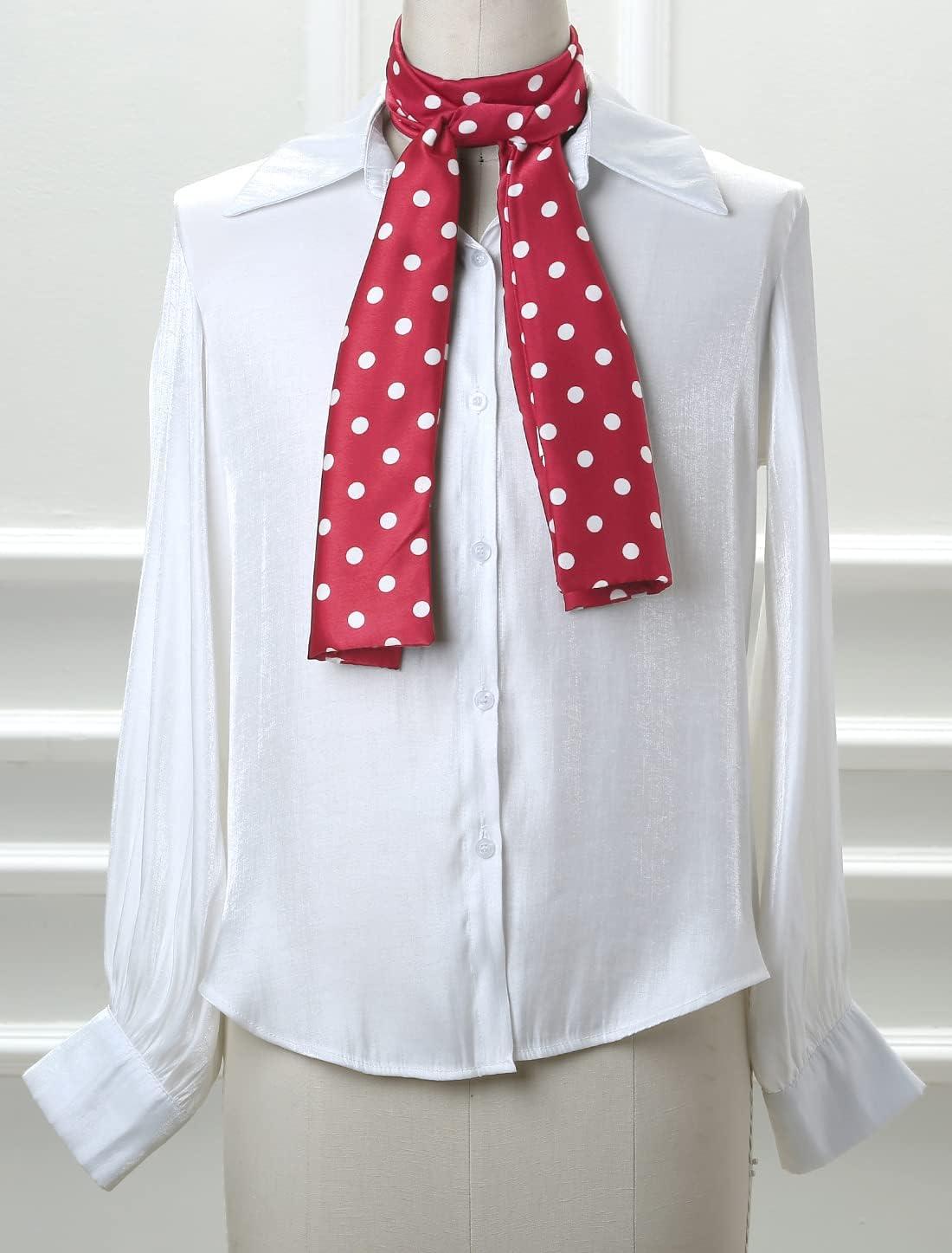 Allegra K Women Retro Polka Dots Skinny Scarf Neck Scarves Wrap Long Neckerchief Hair Band(White)