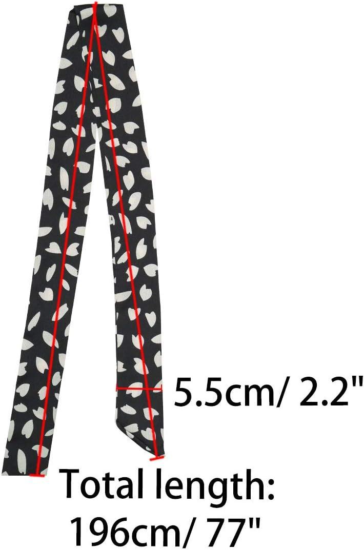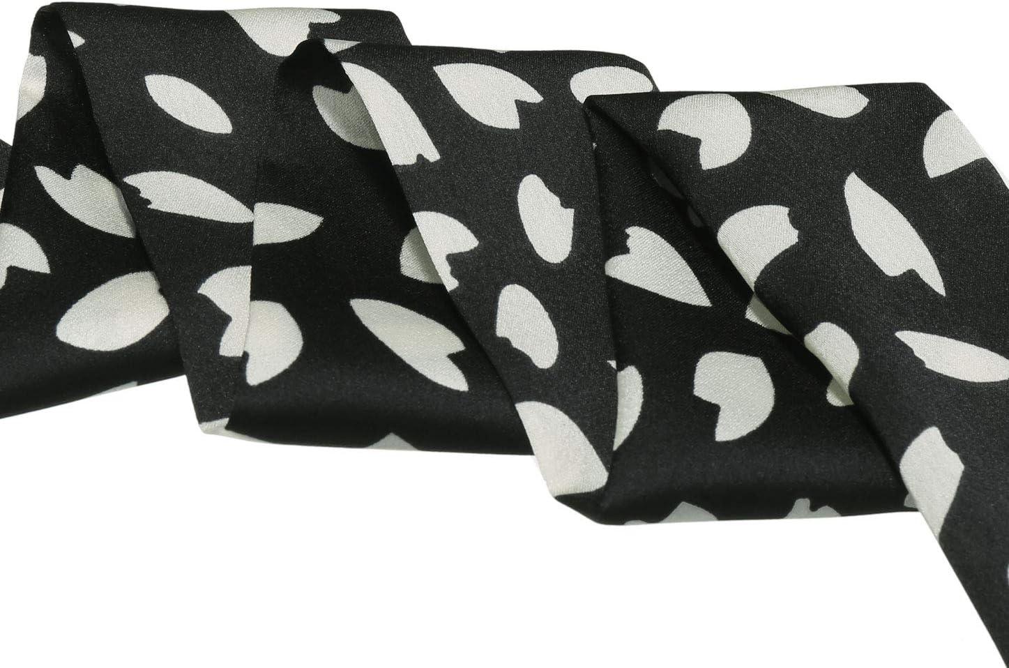 Allegra K Women Skinny Ribbon Neckerchief Heart Pattern Narrow Hair Wrist Scarf Headband Handbag Handle Wrap(Black Floral)