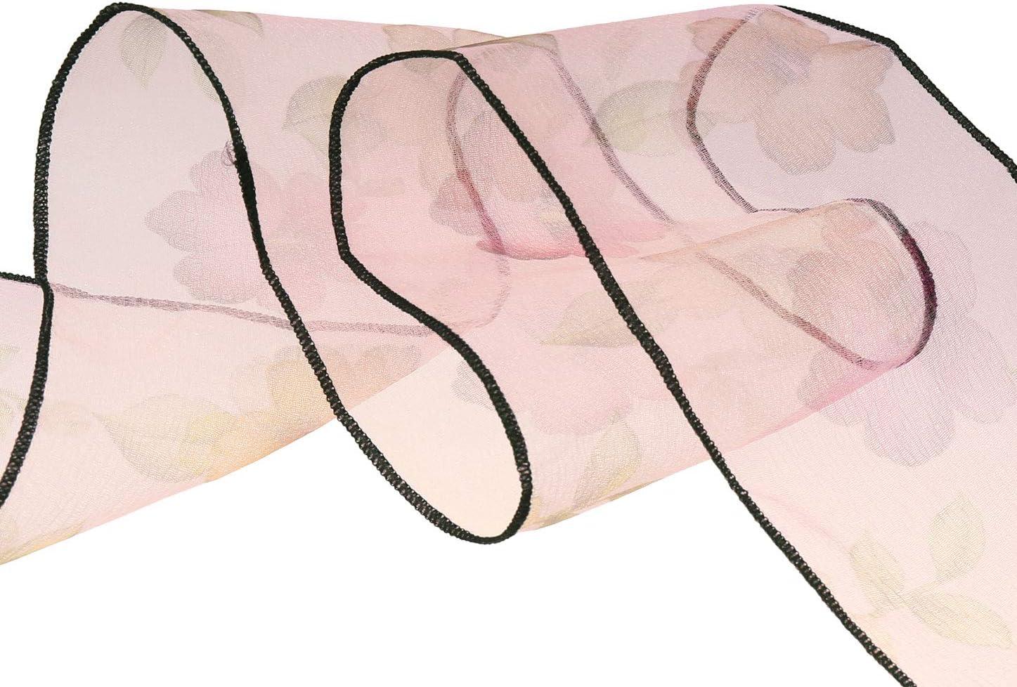 Allegra K Women Transparent Skinny Organza Scarf Floral Neckerchief Hair Band(Pink)