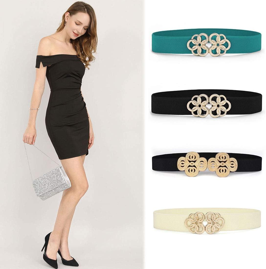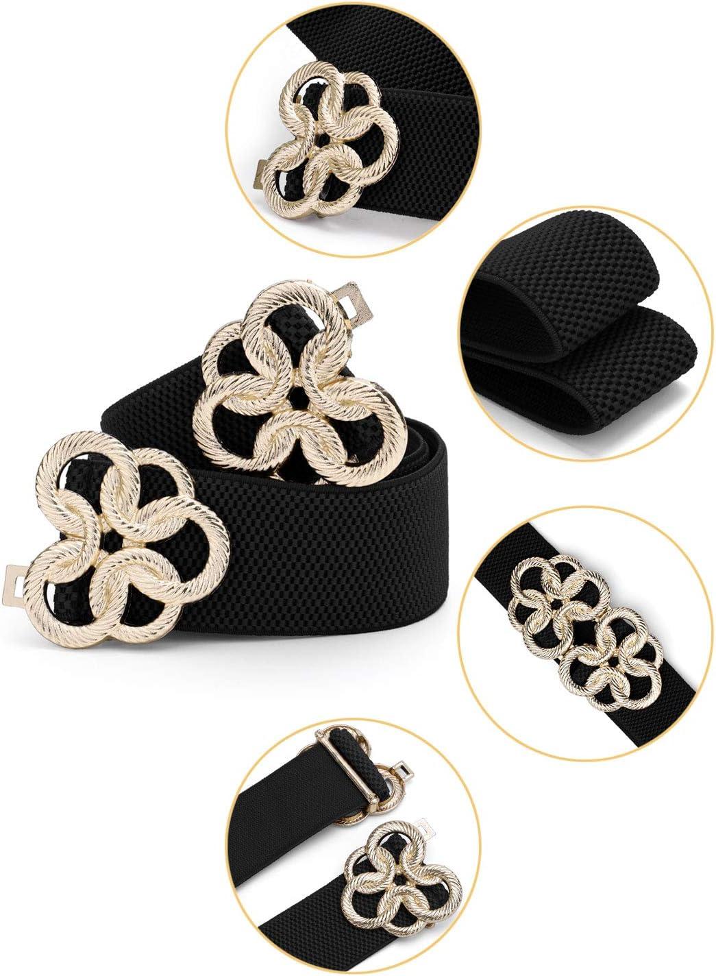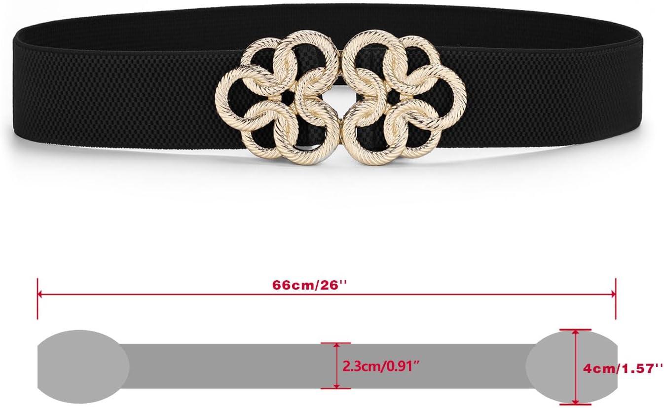Allegra K Women Wide Elastic Waist Belt Cinch with Gold Metal Interlock Buckle(Black gold Tone)