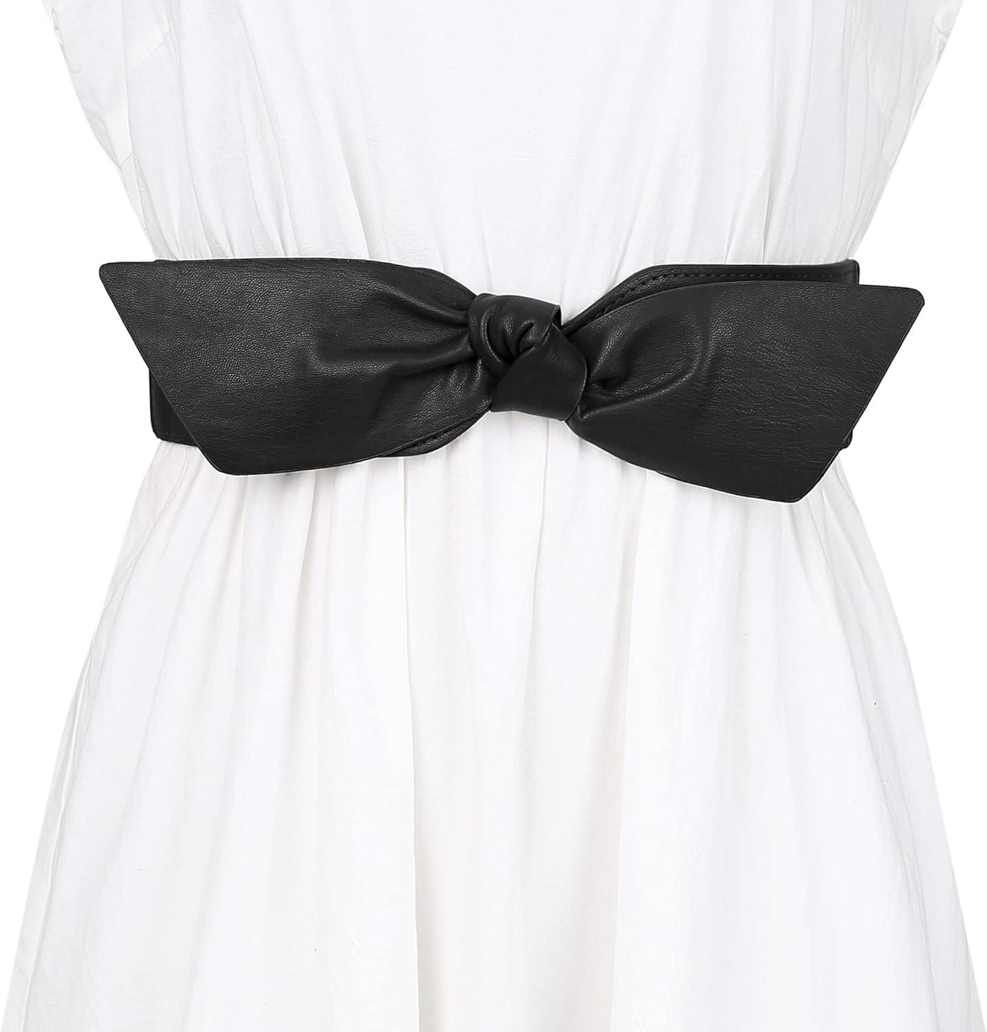 Allegra K Women Wide Elastic Waist Belts Bow Knot Belts Snap Button(Black)