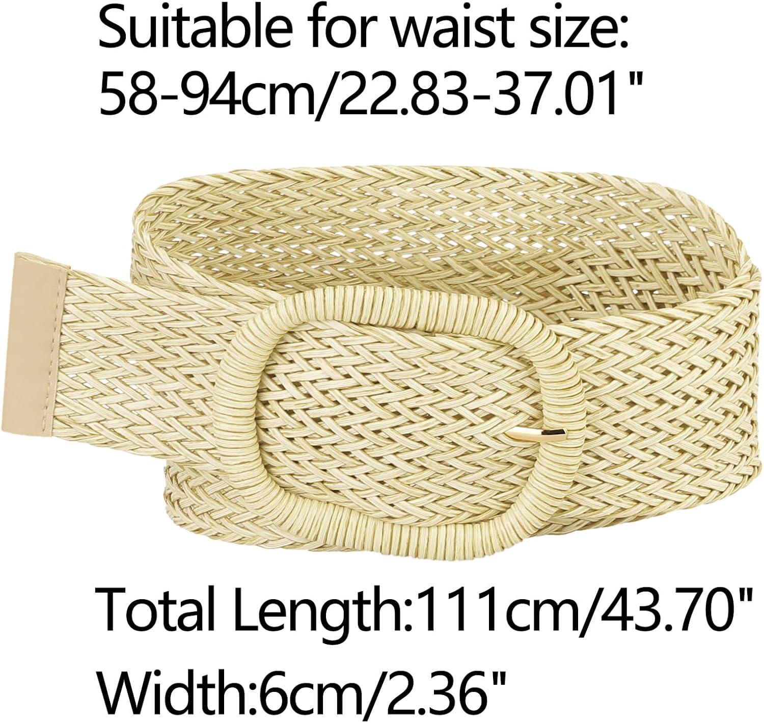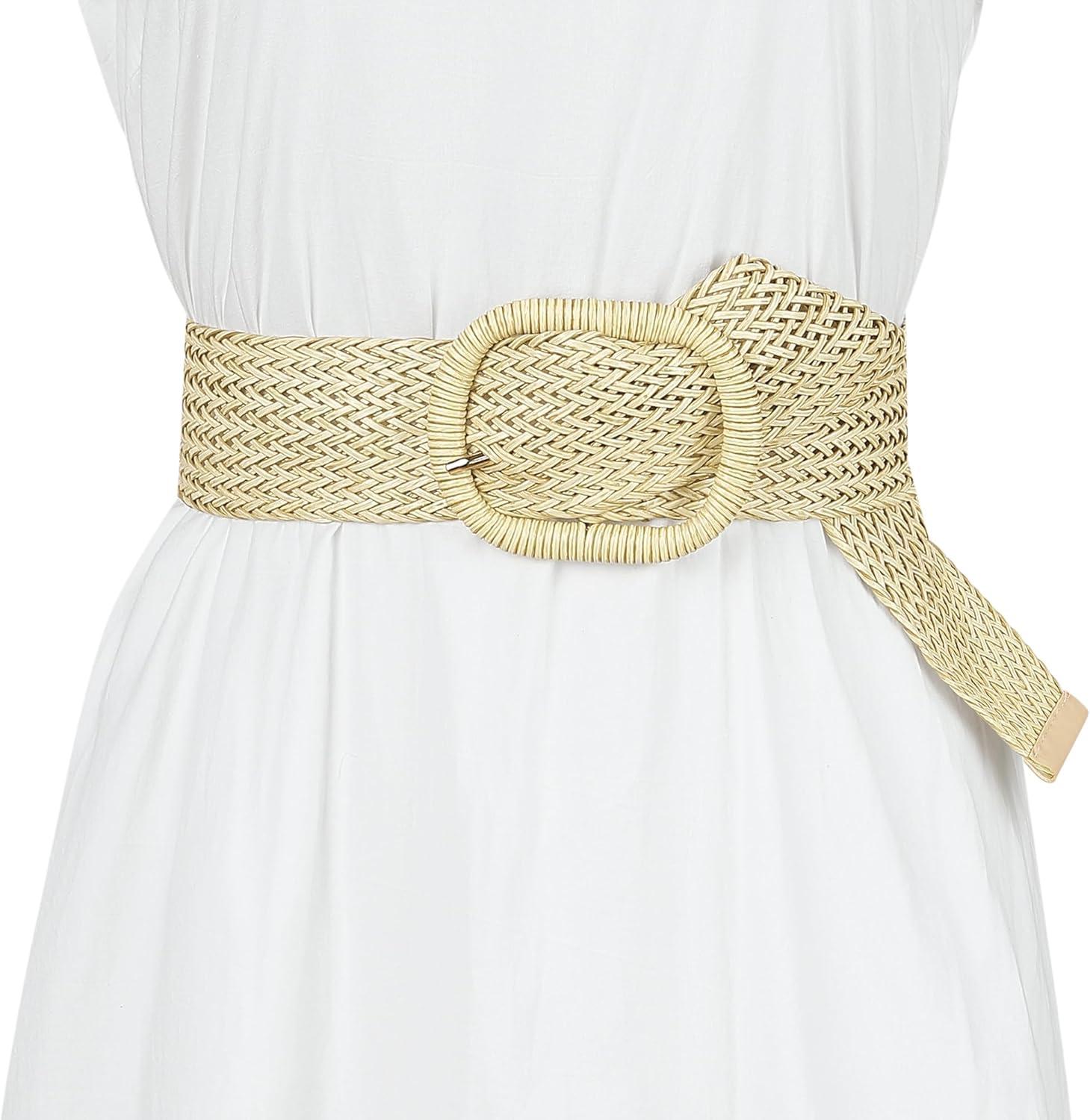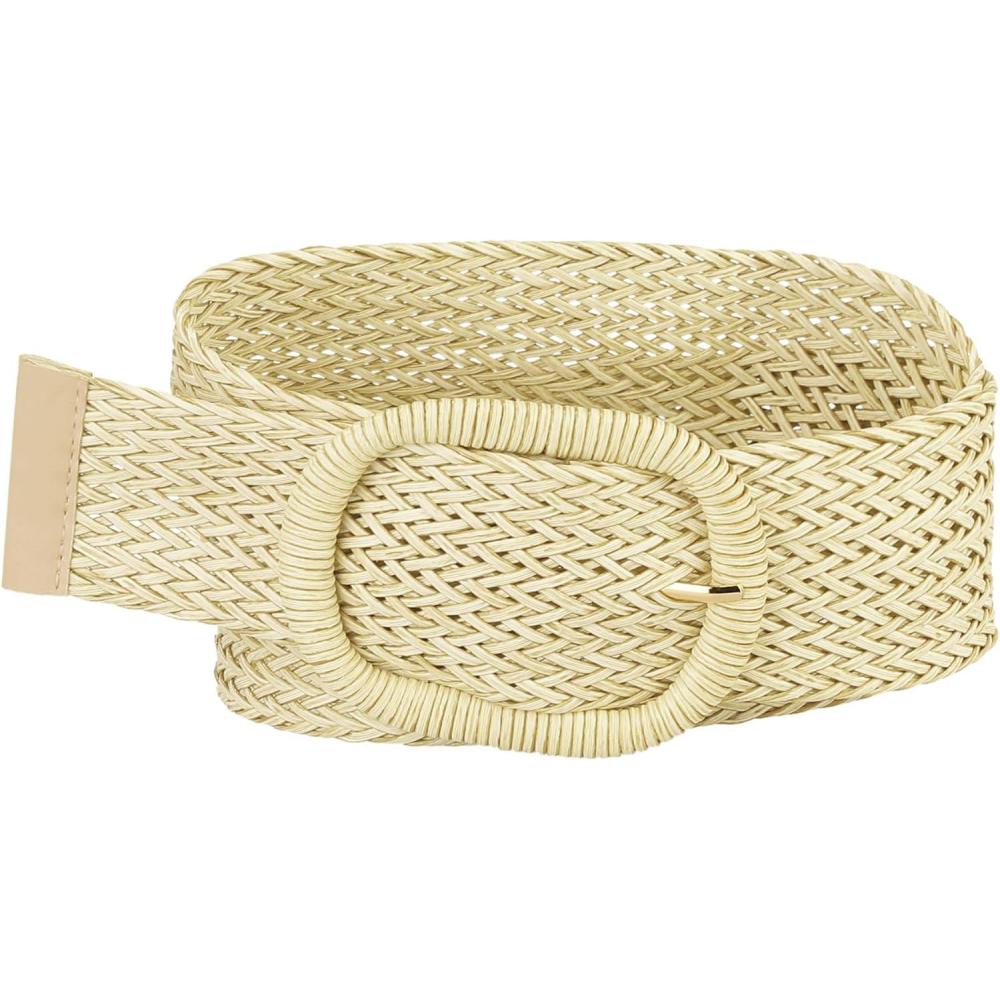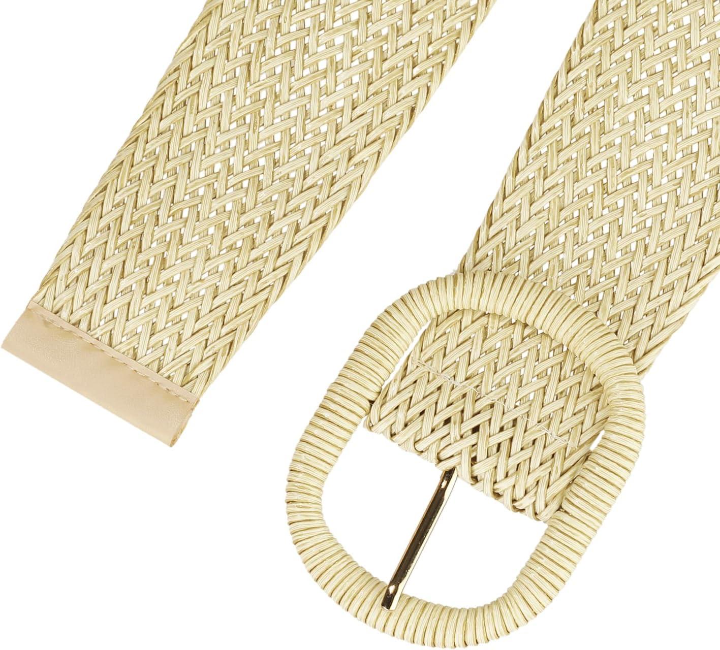 Allegra K Women Wide Waist Belts Braided Woven Belts for Dress Chunky Buckle(Beige)