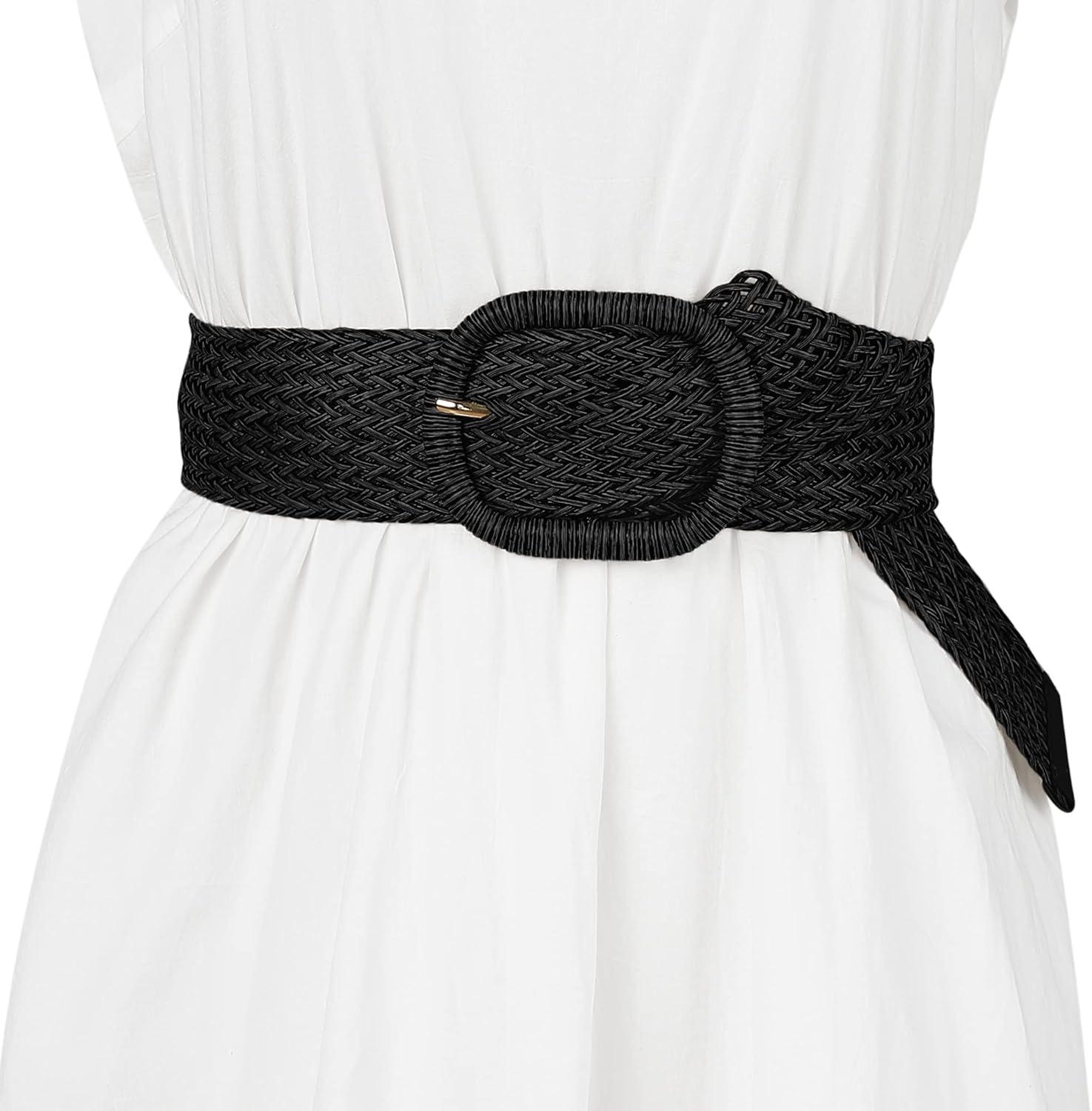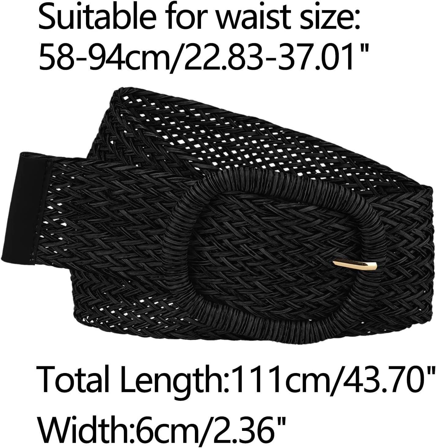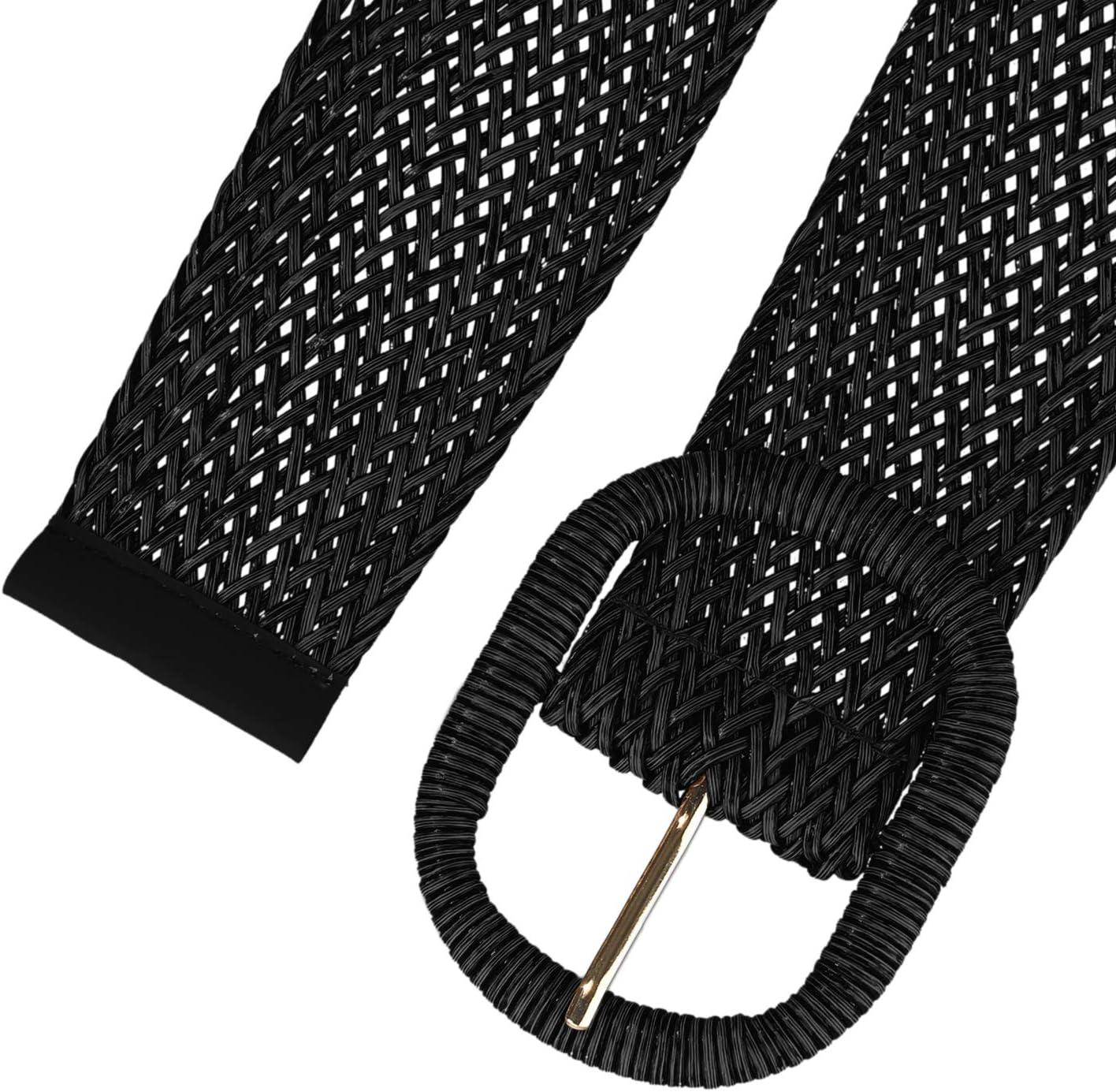 Allegra K Women Wide Waist Belts Braided Woven Belts for Dress Chunky Buckle(Black)