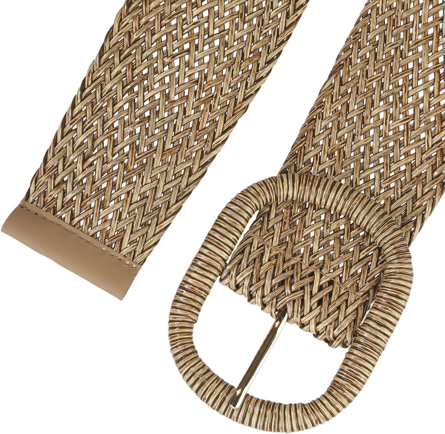 Allegra K Women Wide Waist Belts Braided Woven Belts for Dress Chunky Buckle(Coffee)