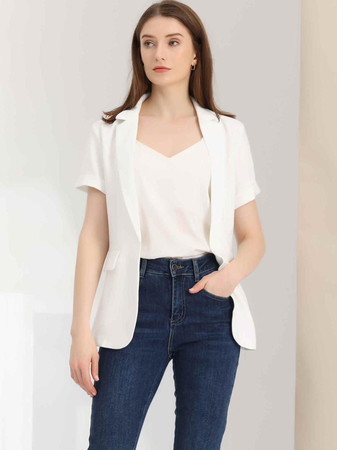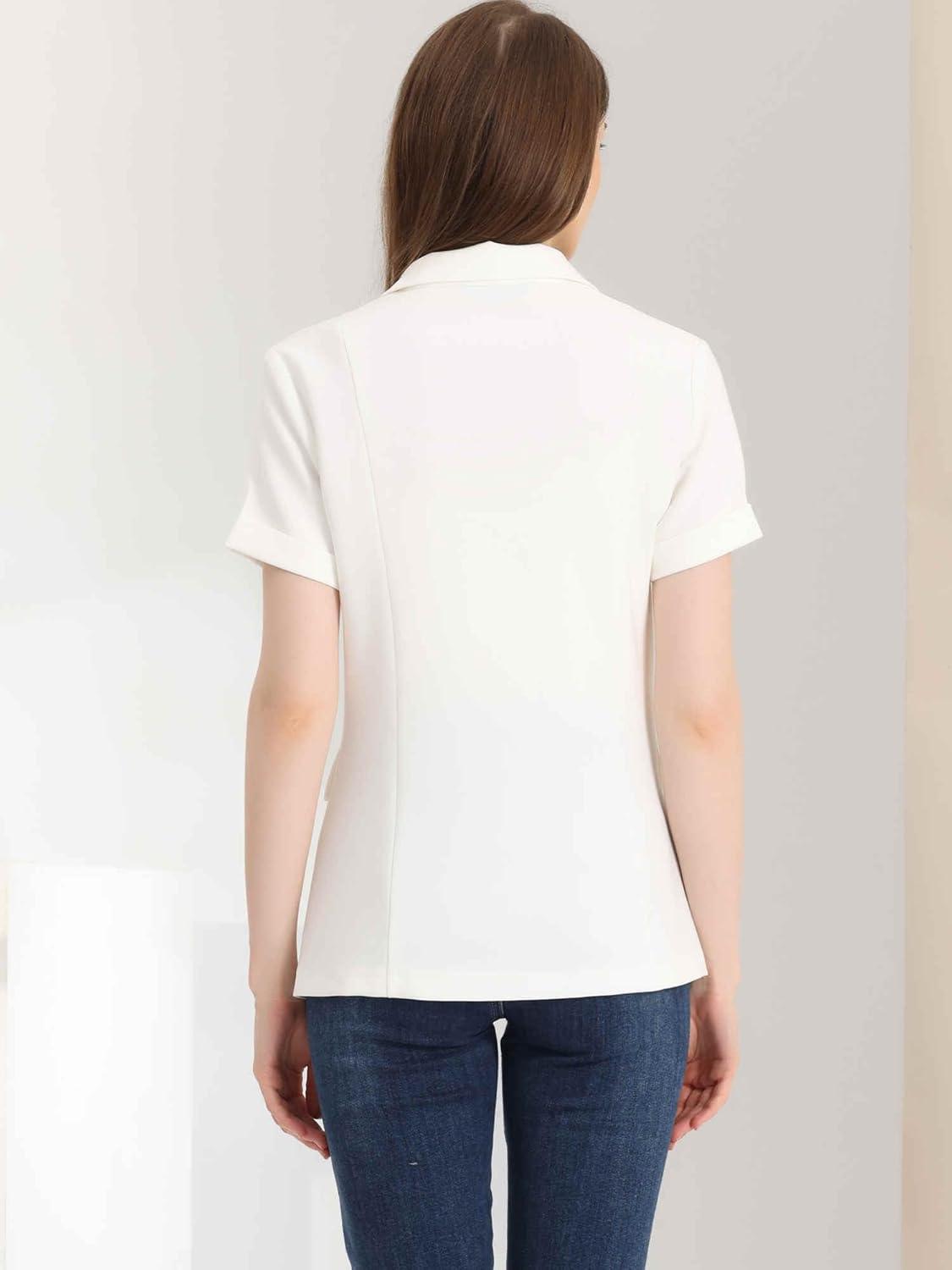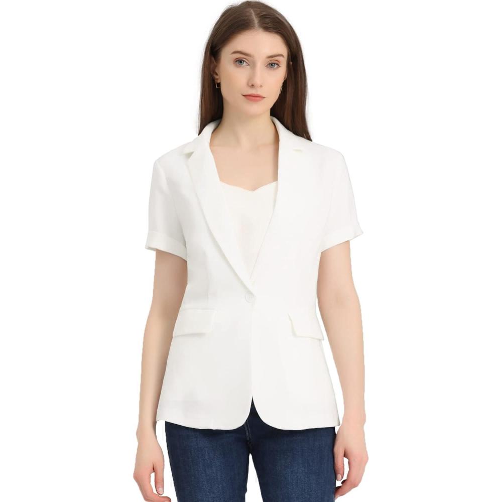 imageAllegra K Womens 1 Button Blazer Jacket Office Business Short Sleeve BlazerBeige White