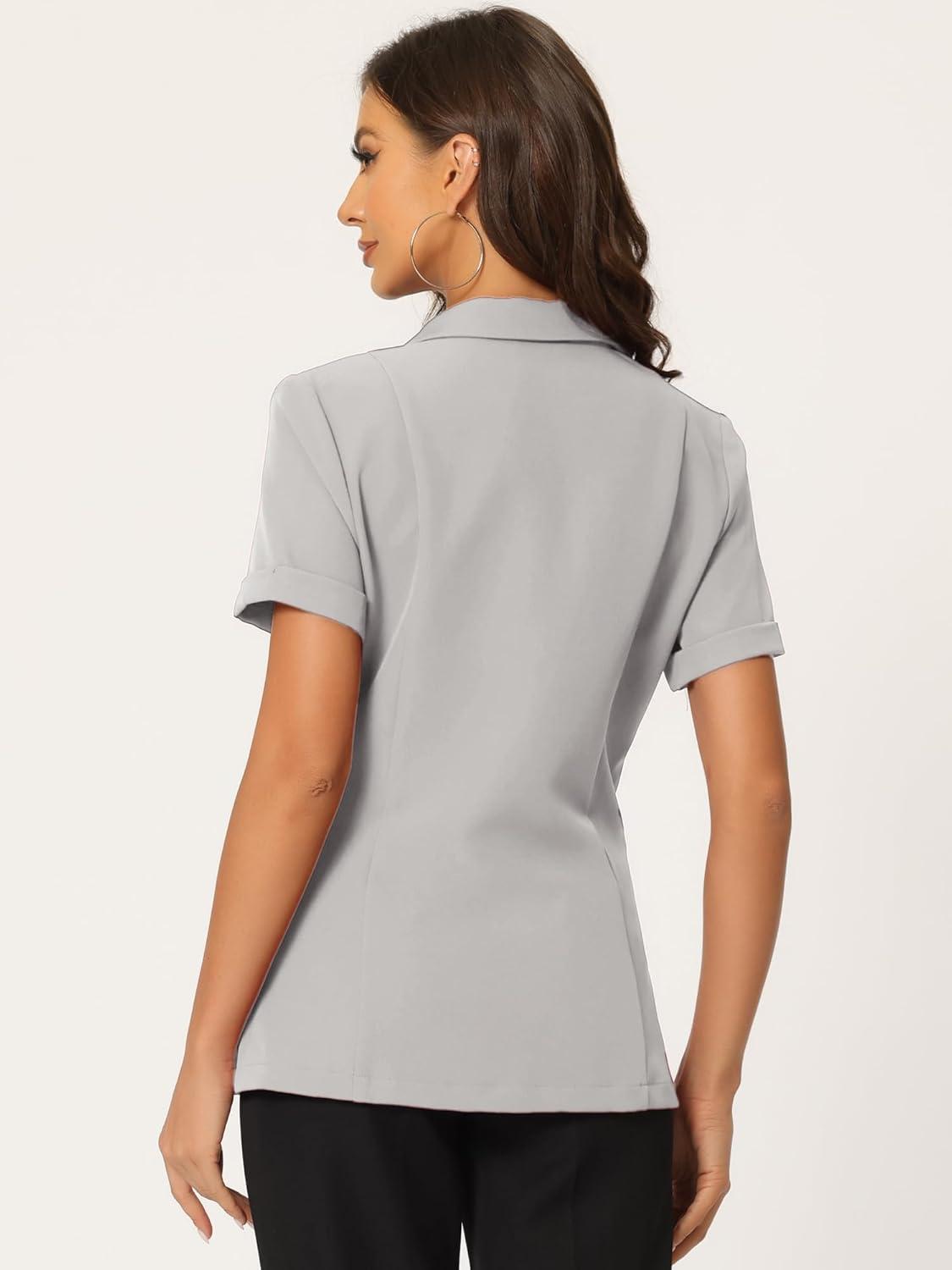 Allegra K Women's 1 Button Blazer Jacket Office Business Short Sleeve Blazer(Grey)