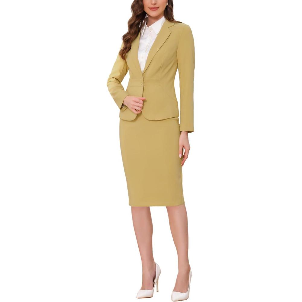 imageAllegra K Womens 2 Piece Skirt Suit Set Business Long Sleeve Blazer and Pencil Skirt OutfitsPale Yellow