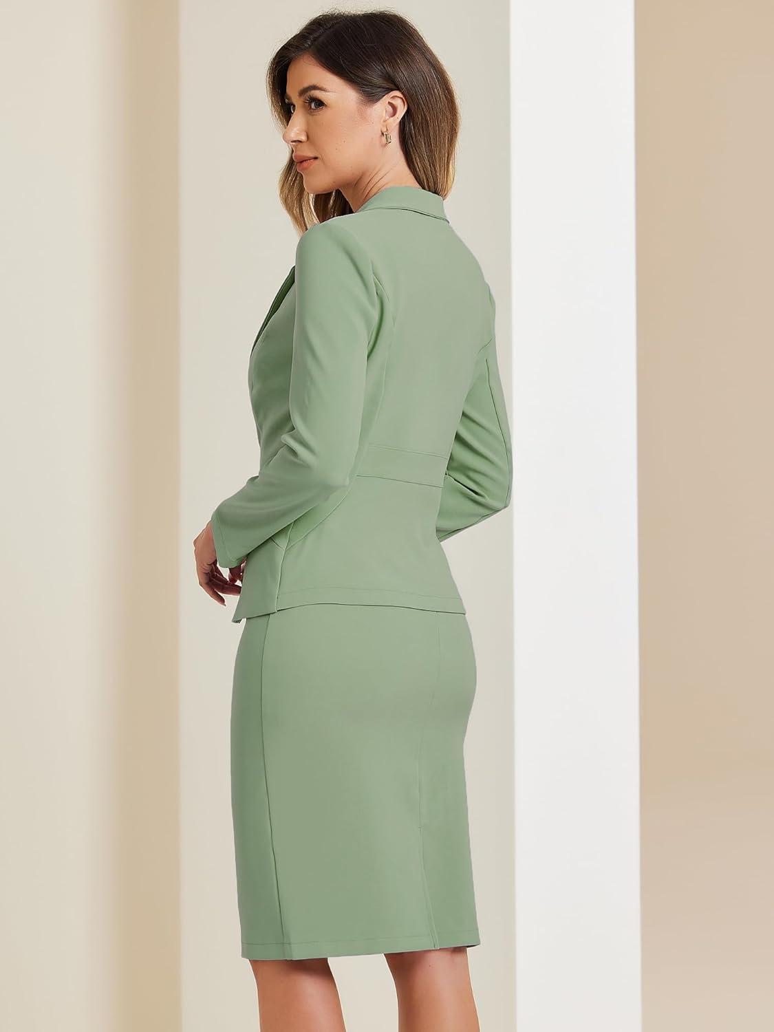 Allegra K Women's 2 Piece Skirt Suit Set Business Long Sleeve Blazer and Pencil Skirt Outfits(Sea Green)