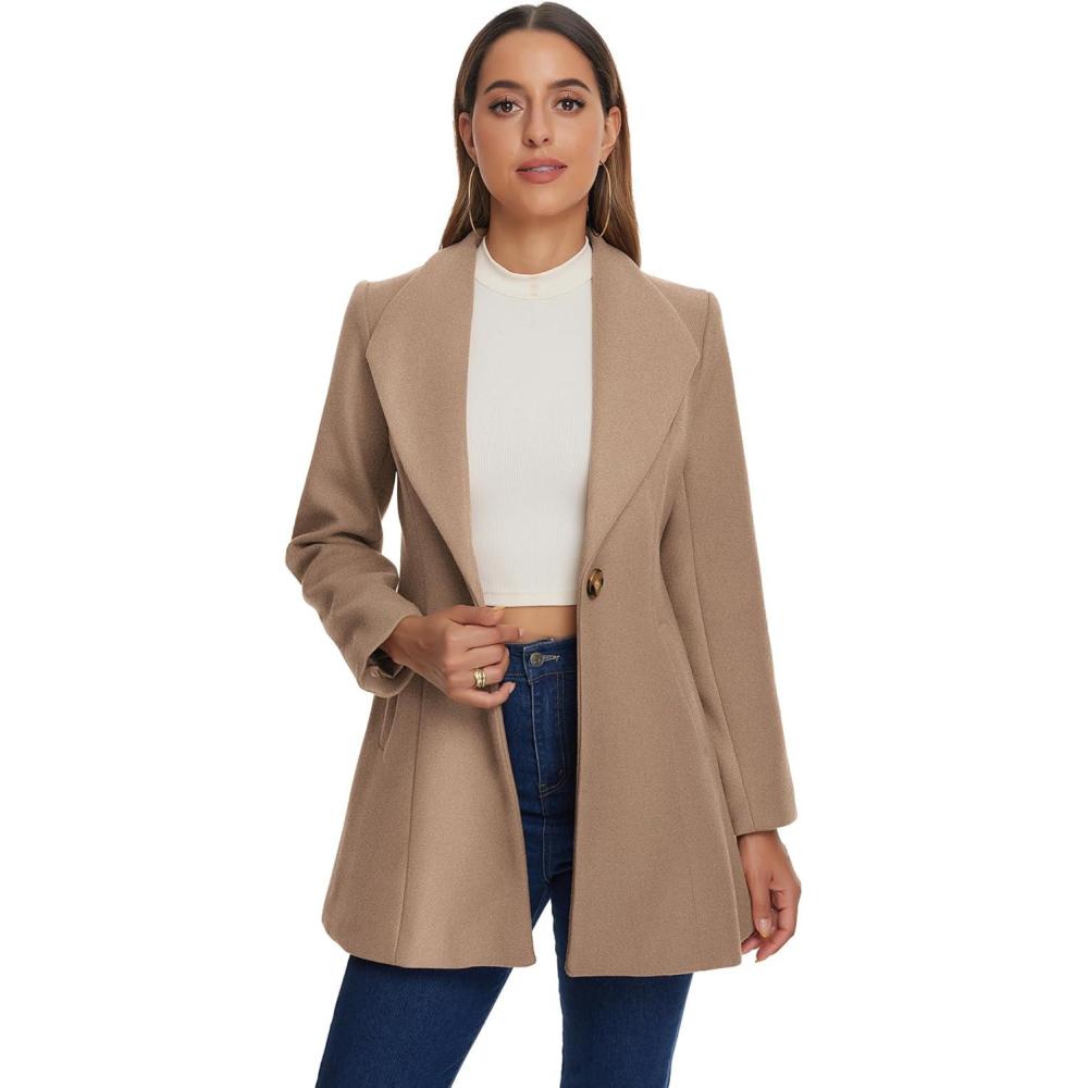 Allegra K Women’s 2025 Coat for Winter Notch Lapel Collar One Button Outwear Classic Work Trench Coats(Dark Beige)