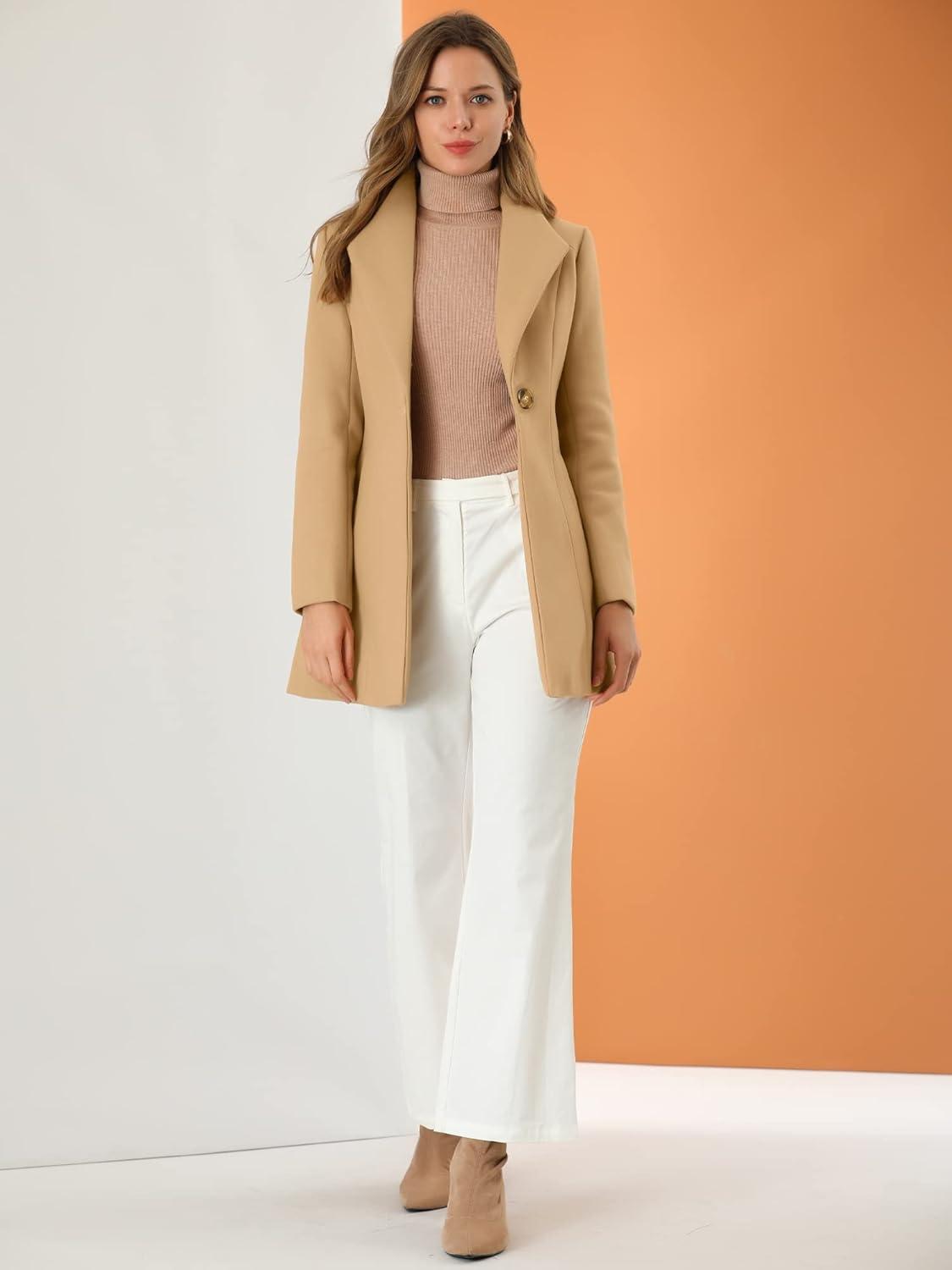 Allegra K Women's 2025 Coat for Winter Notch Lapel Collar One Button Outwear Classic Work Trench Coats(Khaki)