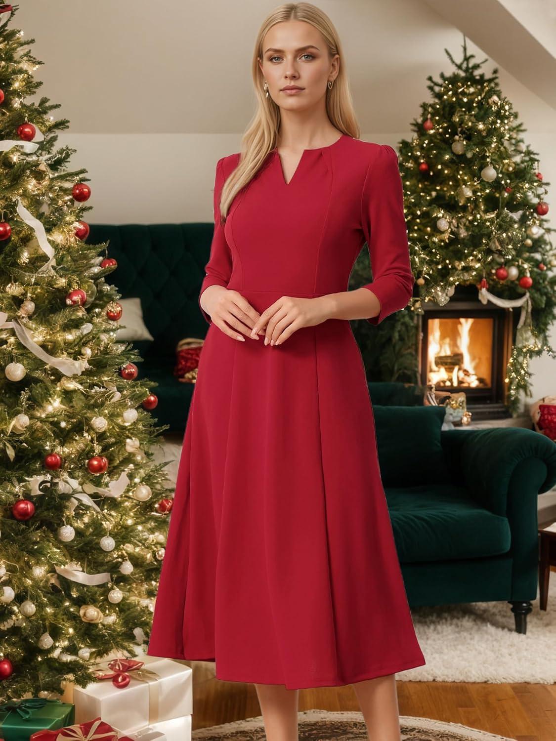 Be the first to review “Allegra K Women’s 3/4 Sleeve Dresses V Neck Elegant A-Line Work Business Formal Midi Dress with Pockets(Red)”