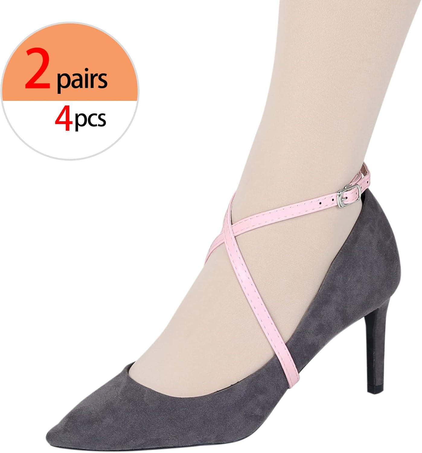 Allegra K Women's Adjustable Detachable Crossed Anti-Slip Shoe Straps for Heels with Buckle(Pink)