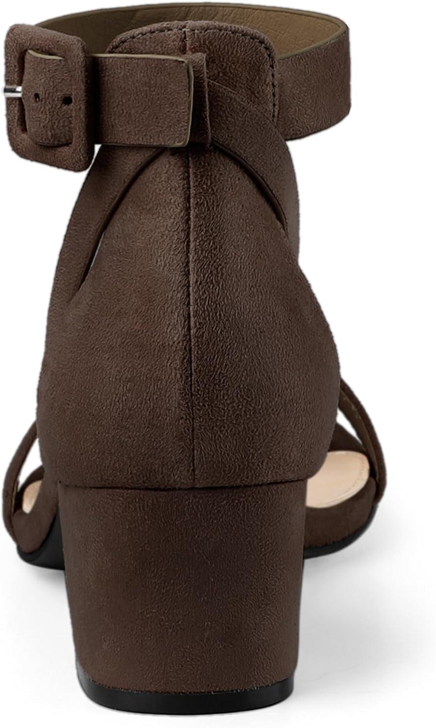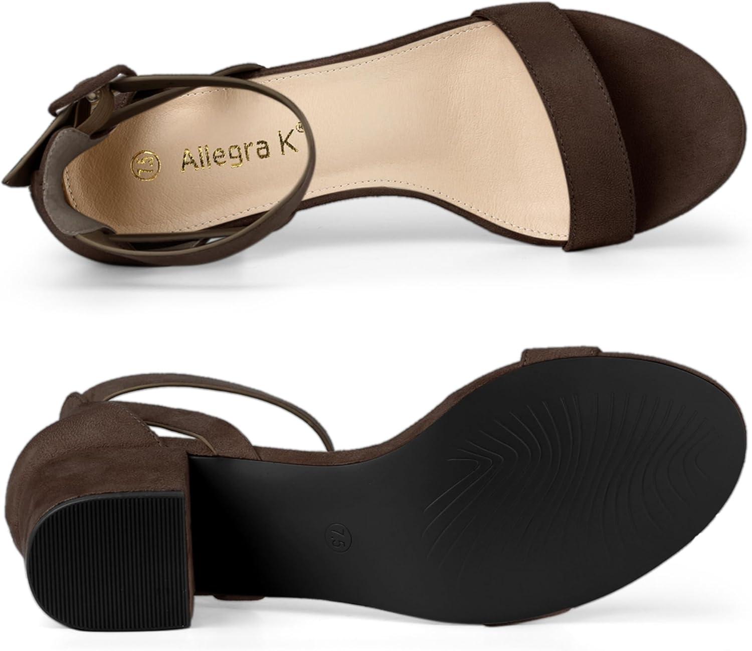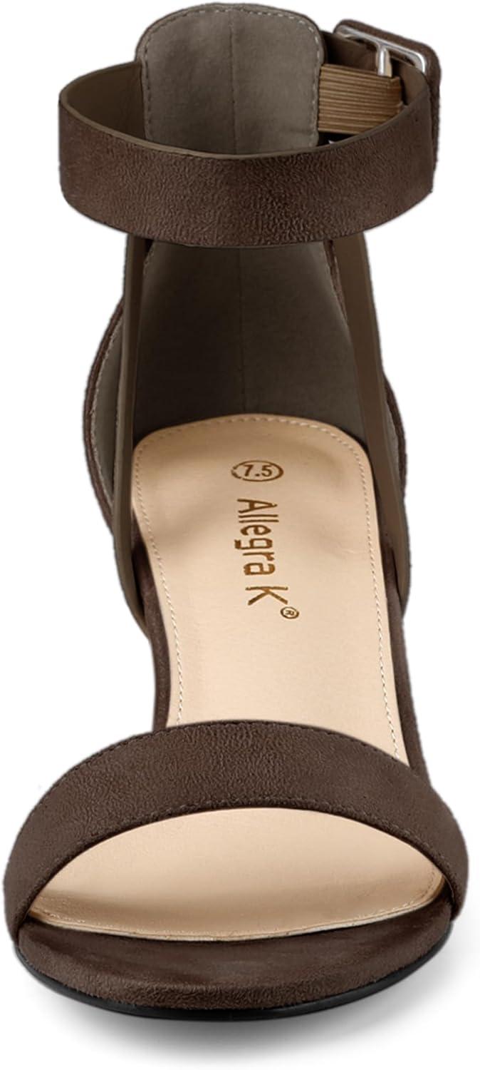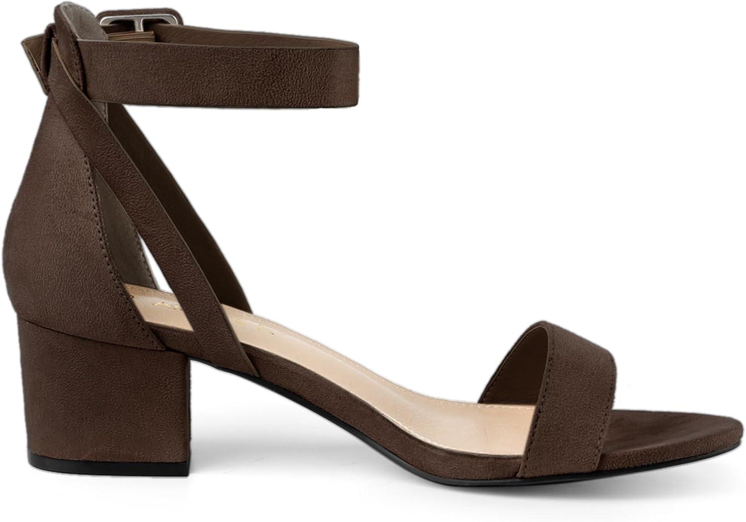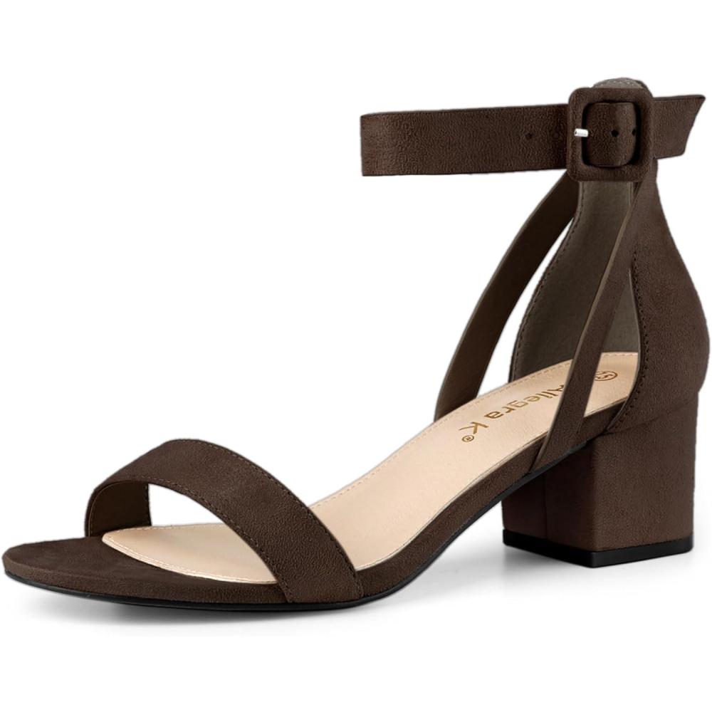 Allegra K Women’s Ankle Strap Block Low Heel Sandal(Coffee)