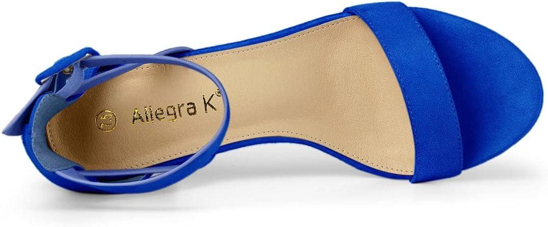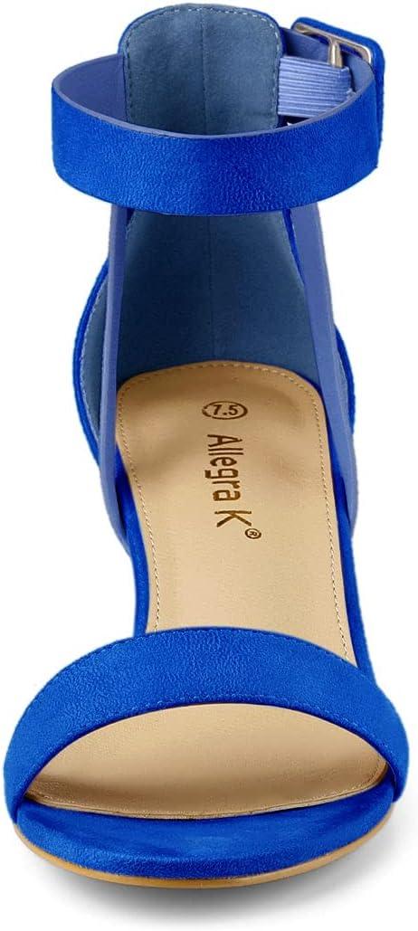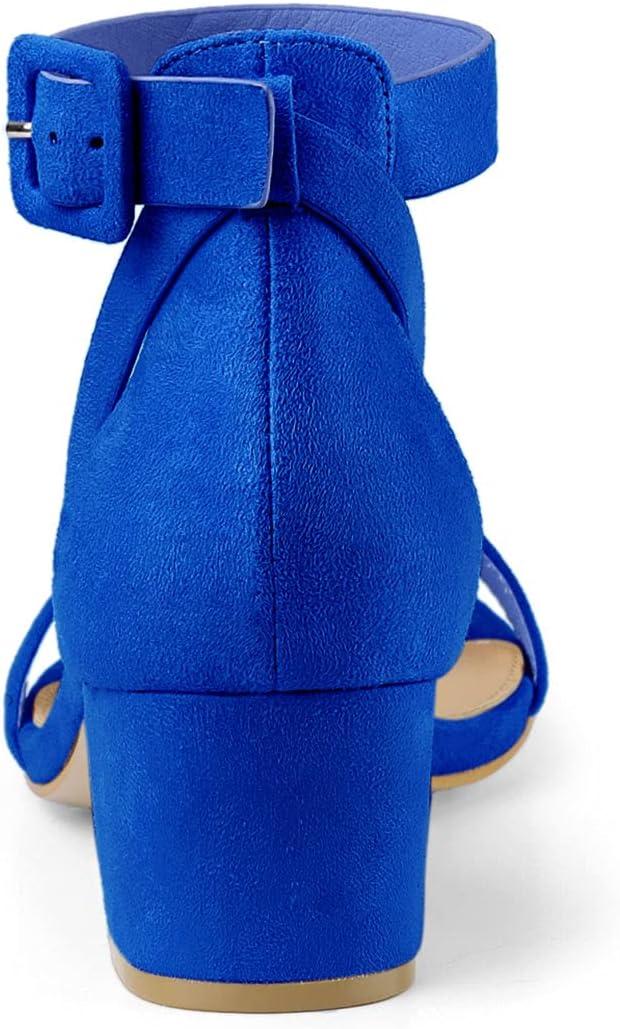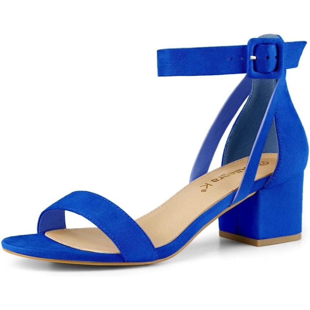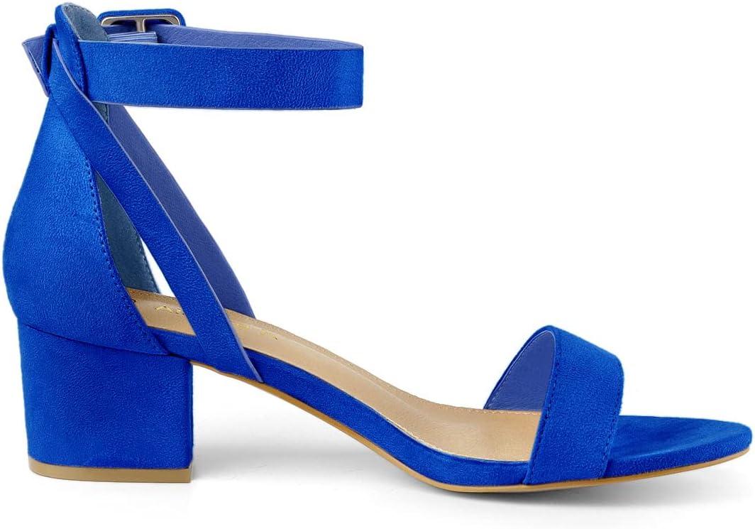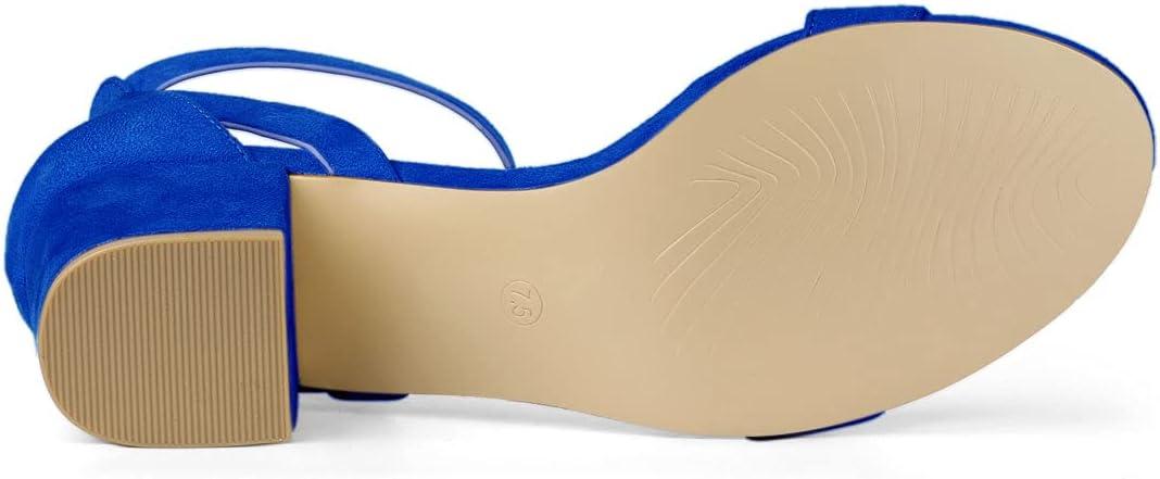 Allegra K Women’s Ankle Strap Block Low Heel Sandal(Deep Blue)