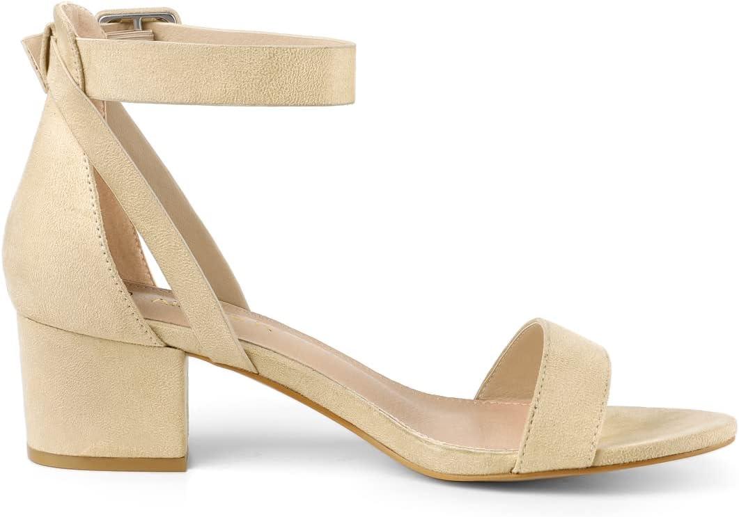 Allegra K Women’s Ankle Strap Block Low Heel Sandal(Khaki)