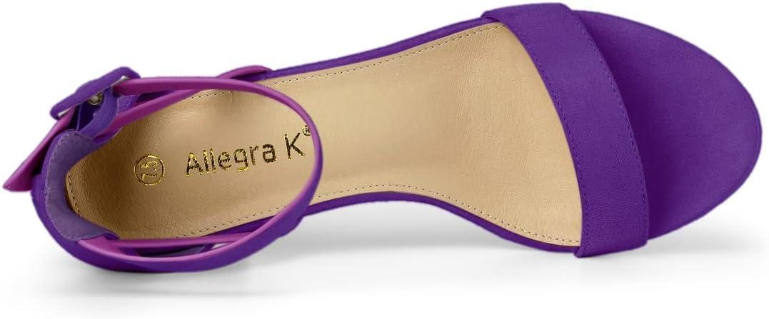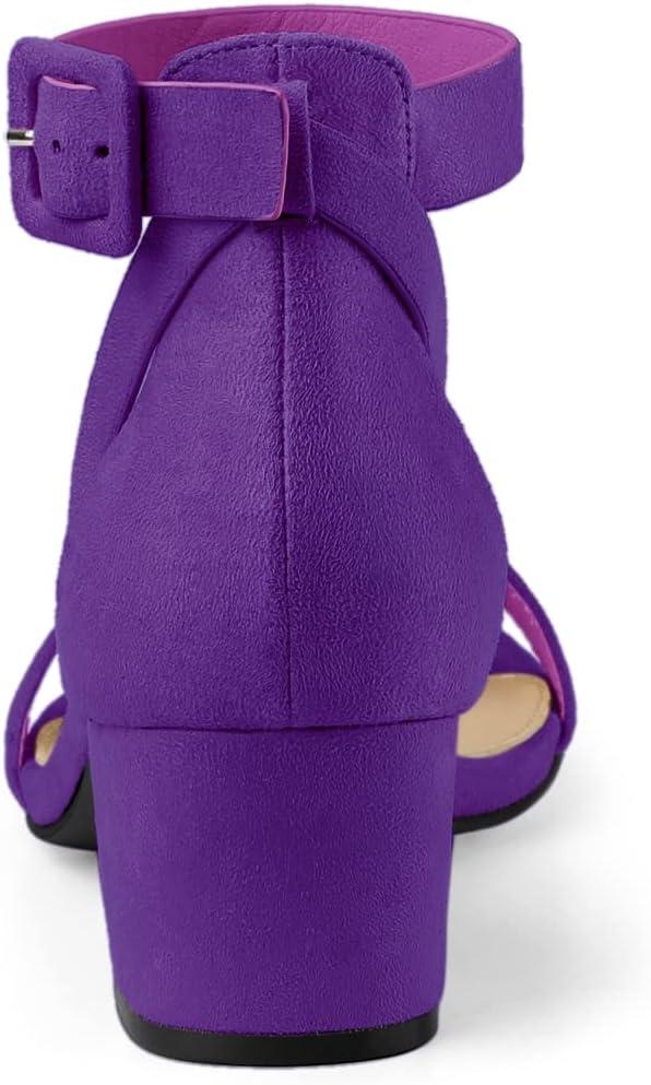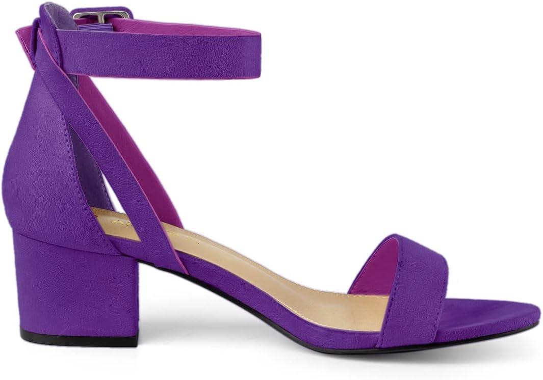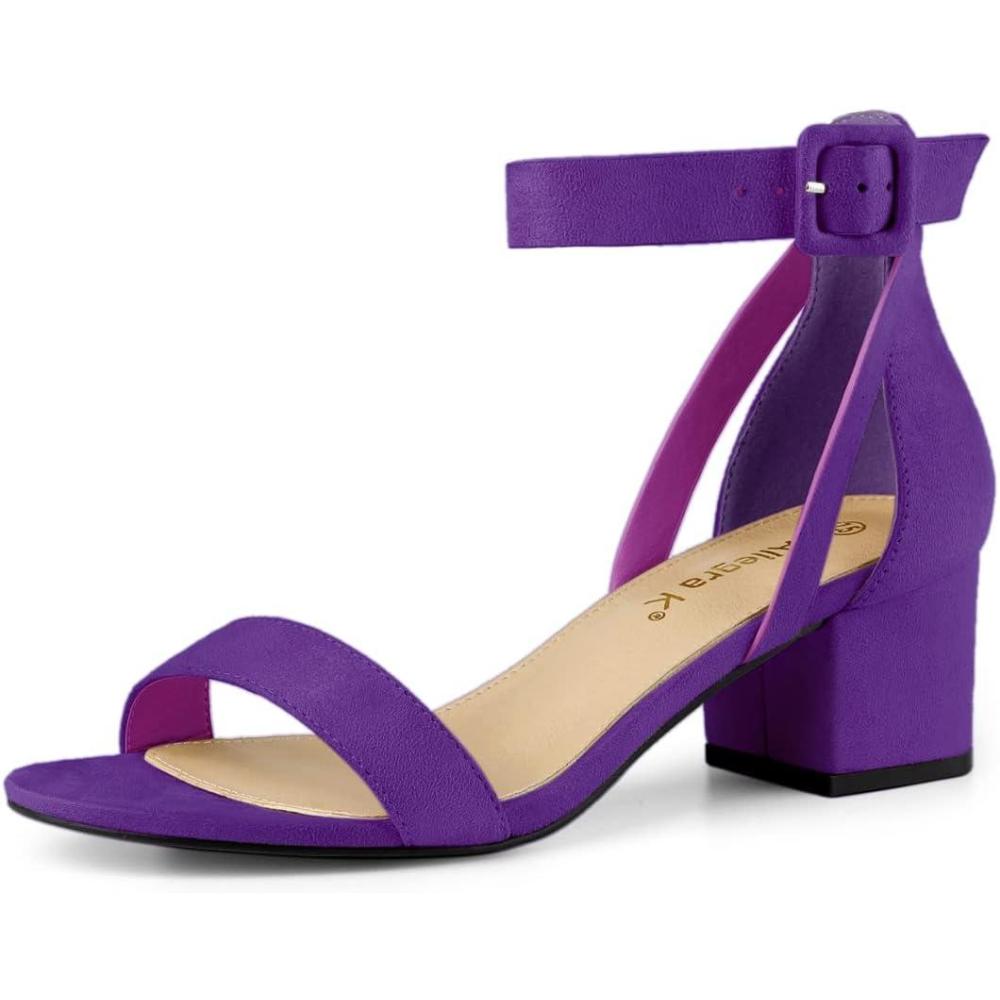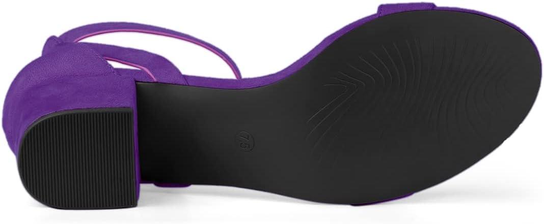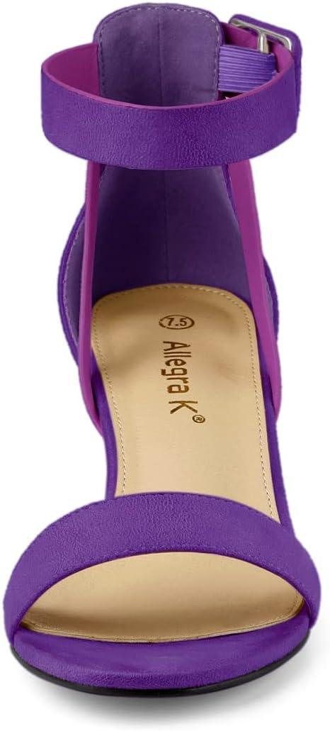 Allegra K Women’s Ankle Strap Block Low Heel Sandal(Purple)
